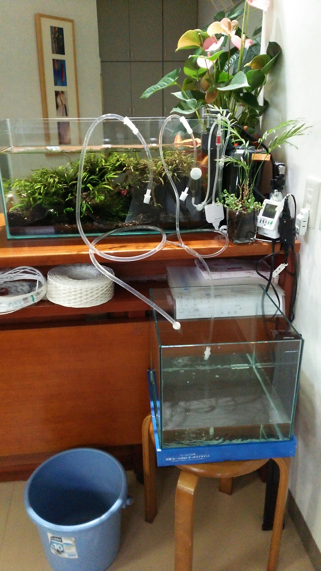 使っていない、30Cになるべくたくさんの飼育水を移します。。。