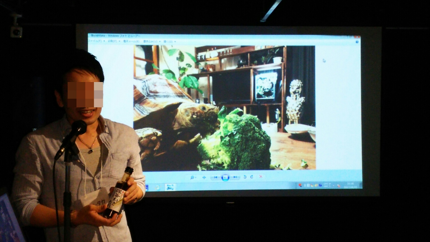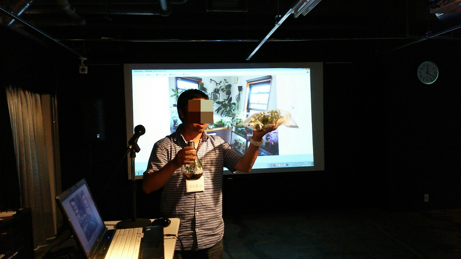 右手に電球型ボトルアクア、左手には大量のブセ・・・w