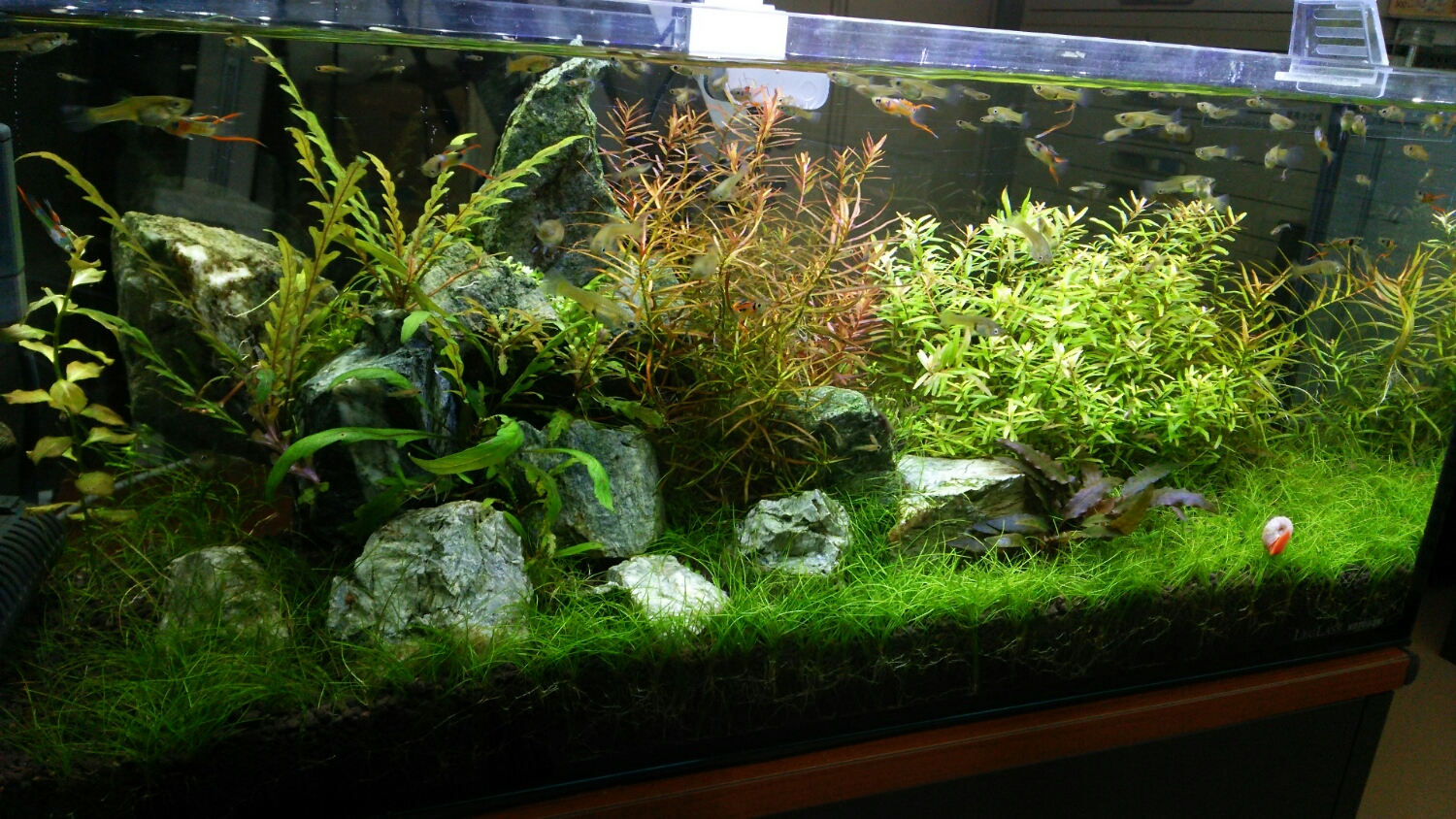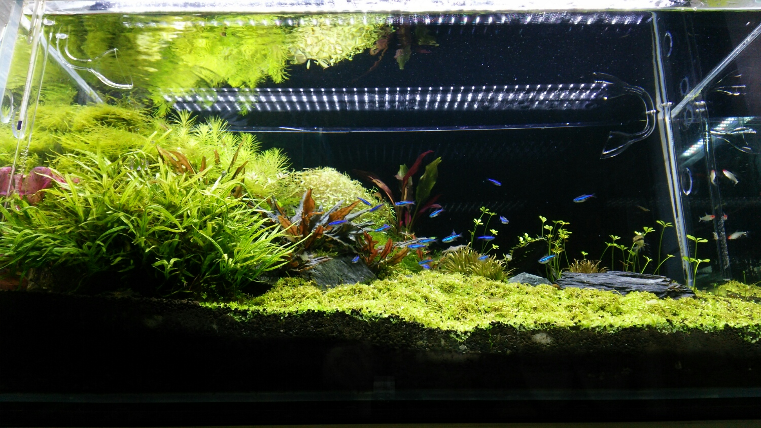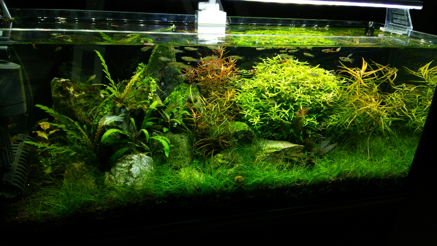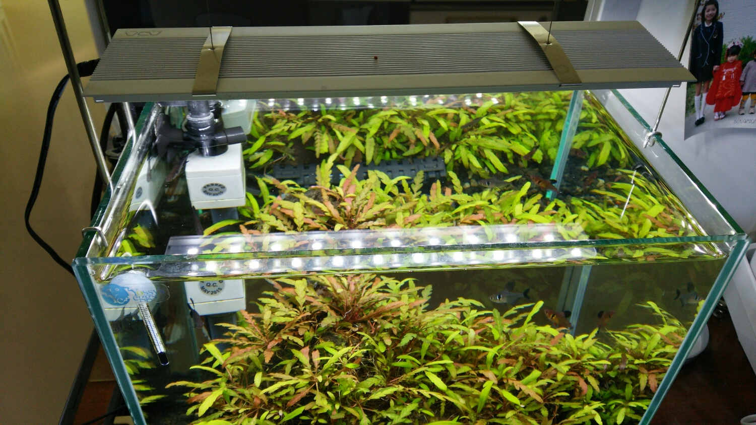 いや、やっぱり全灯点灯の方が水草も魚も綺麗だな。。。