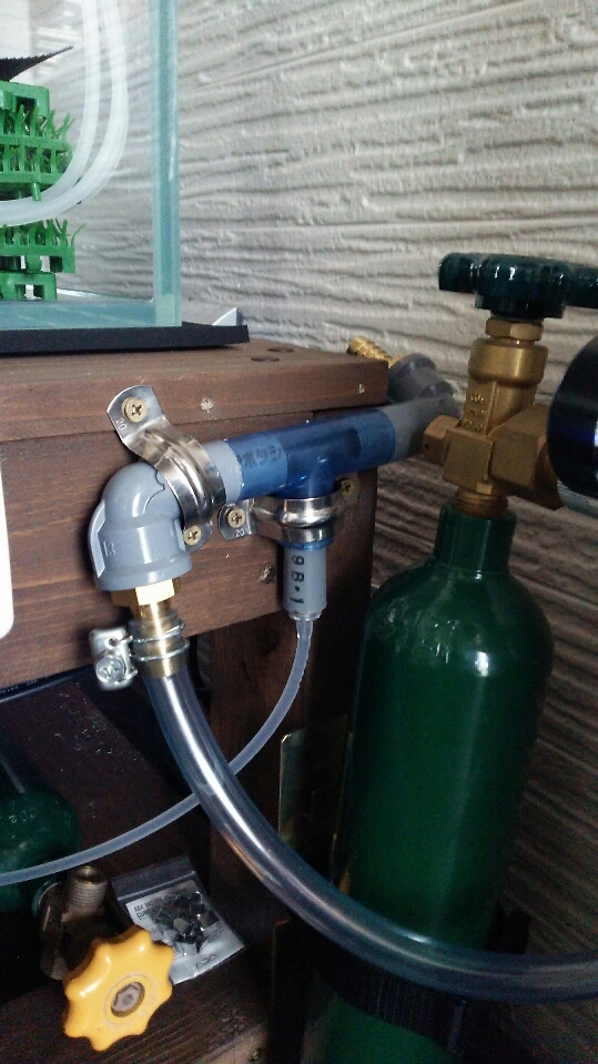 CO2添加とエアーレーションは、フィルターの排水管に挿入