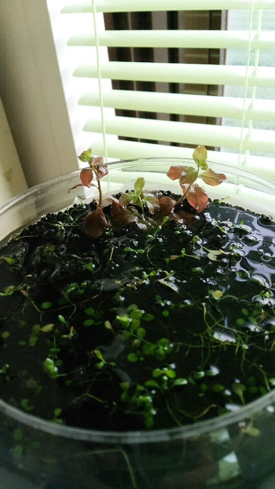 ガラス容器で水上葉管理に挑戦中のルドヴィジア オバリス。。。
