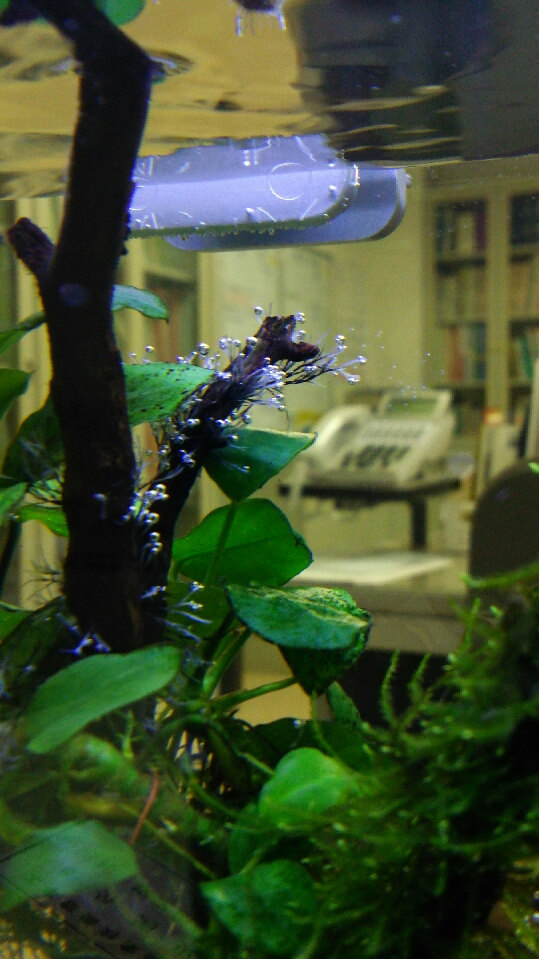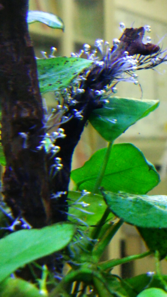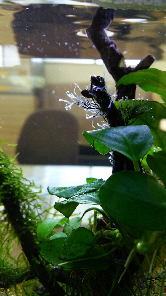 会社の30cm水槽の流木に、謎の物体