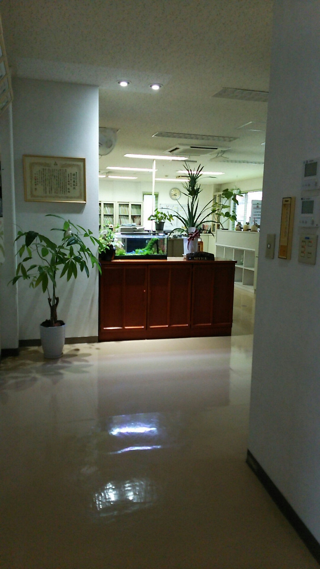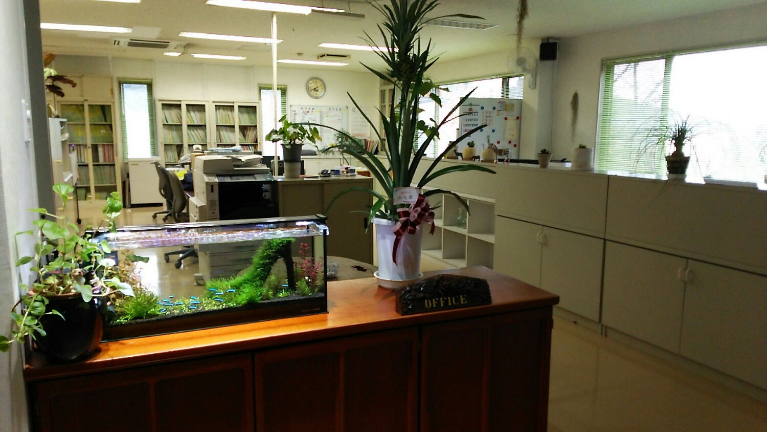 以前は、"ついたて"が無造作に置かれた殺風景な事務所だった。
