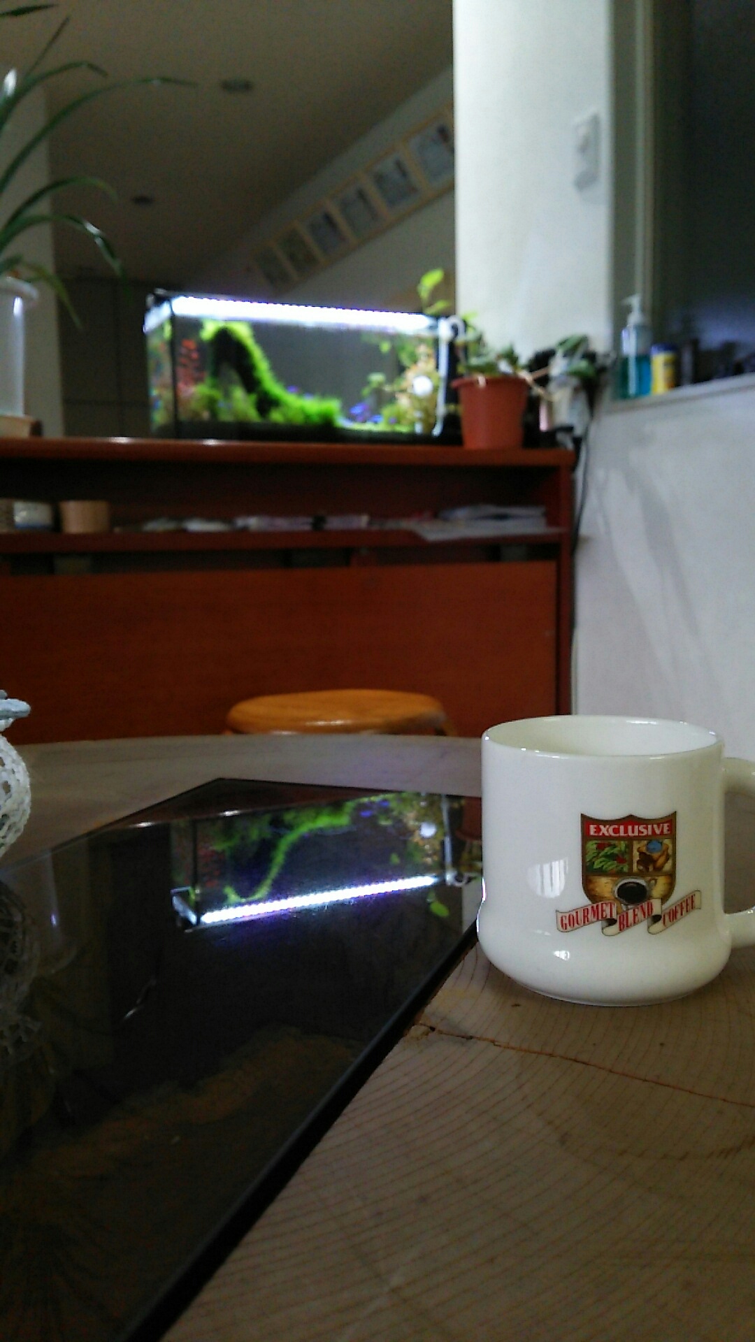 今朝はのんびりコーヒーなんぞいただきながら、水槽を眺めます(^_^)v
