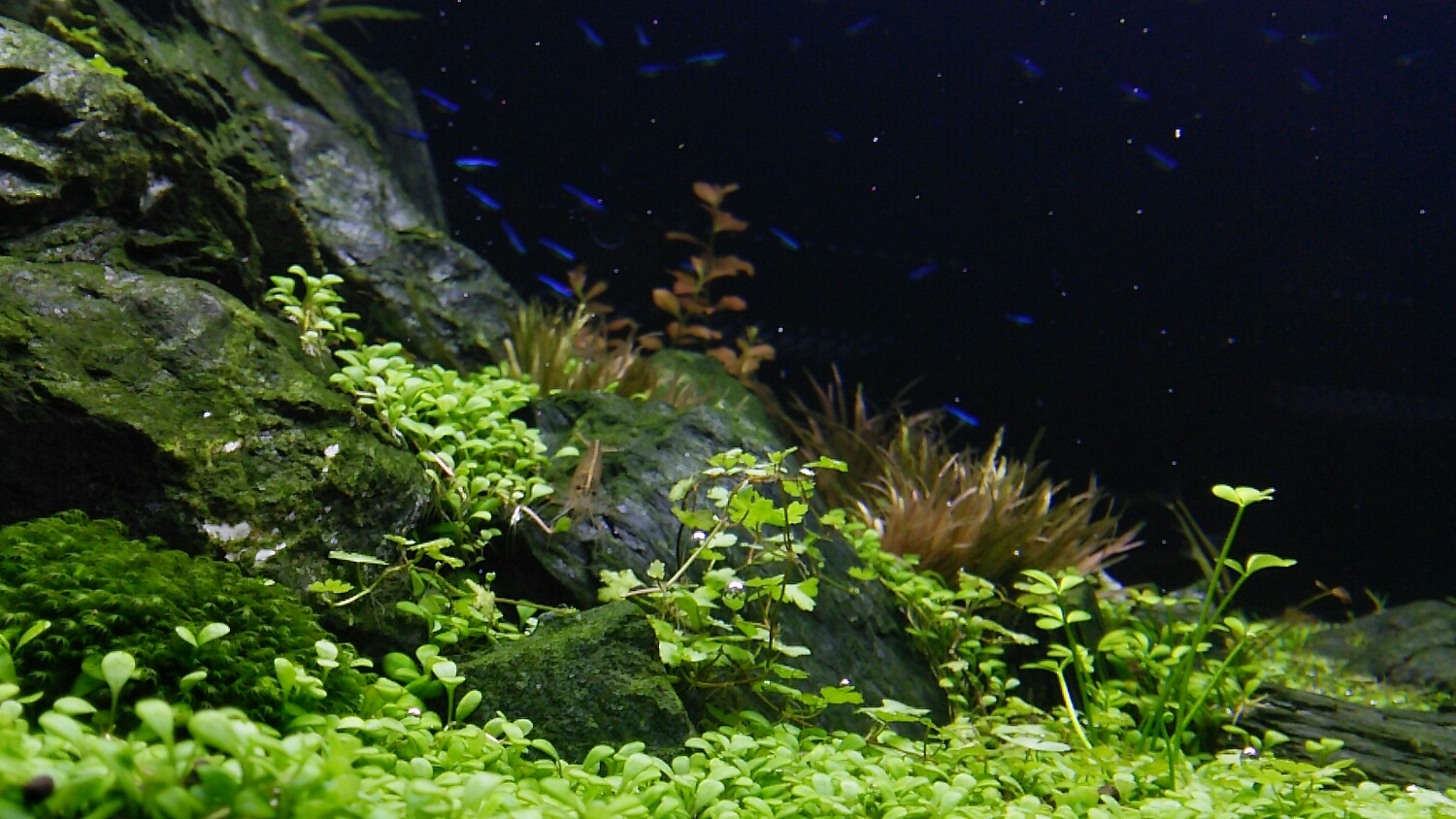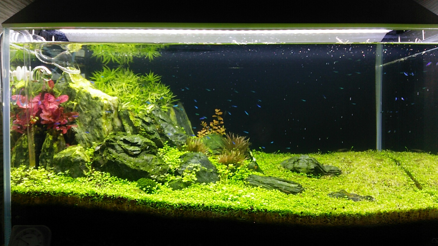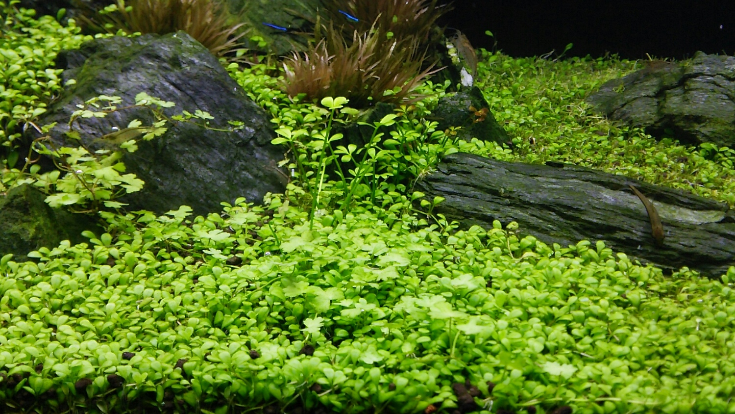 90cm水槽の半分を埋めつくし、岩やブリクサをも飲み込む勢いは誰にも止められない