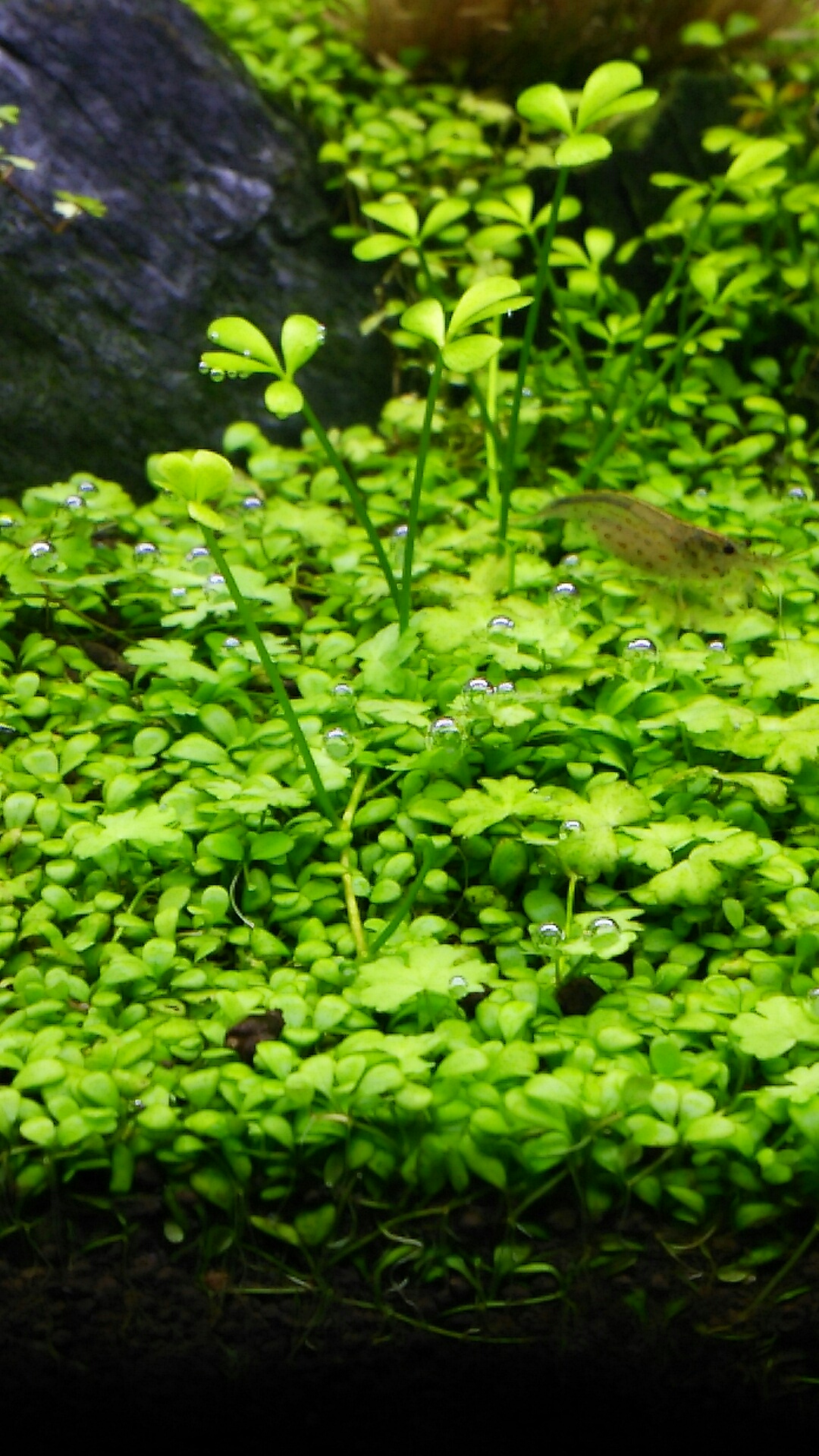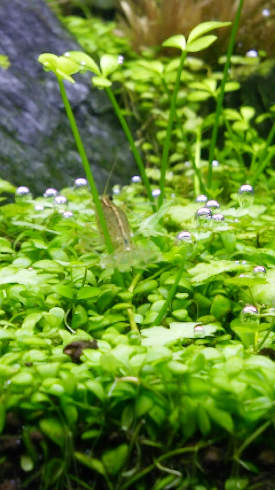 石の後ろ側に小さい葉っぱが3つ出てきてます!