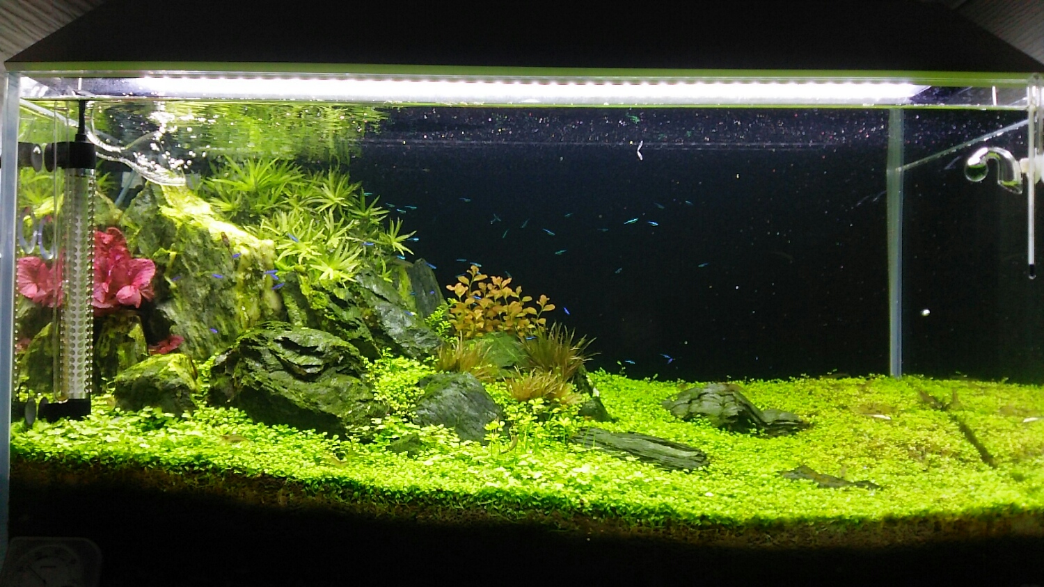 レイアウト変更した、60slim水槽の中央部分に植栽!
