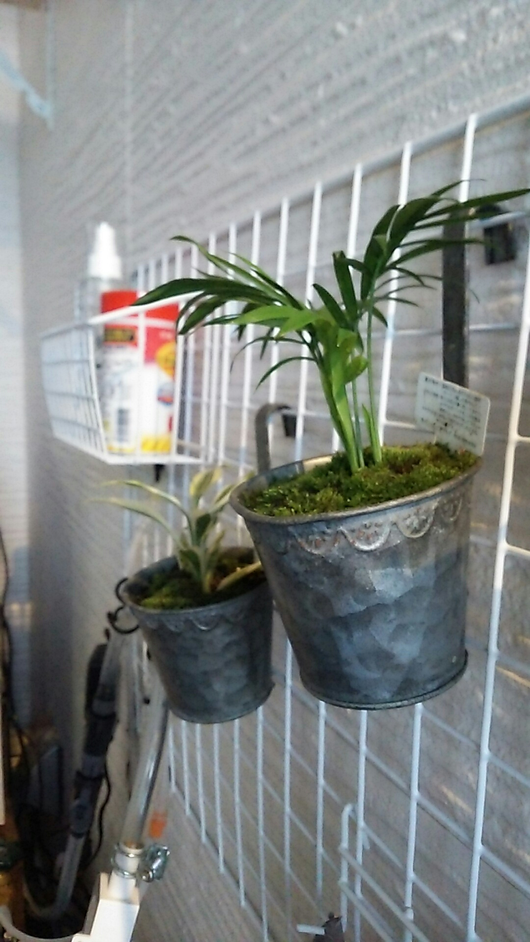 小さいバケツにソイルを入れてテーブルヤシ他を植えました\(^-^)/