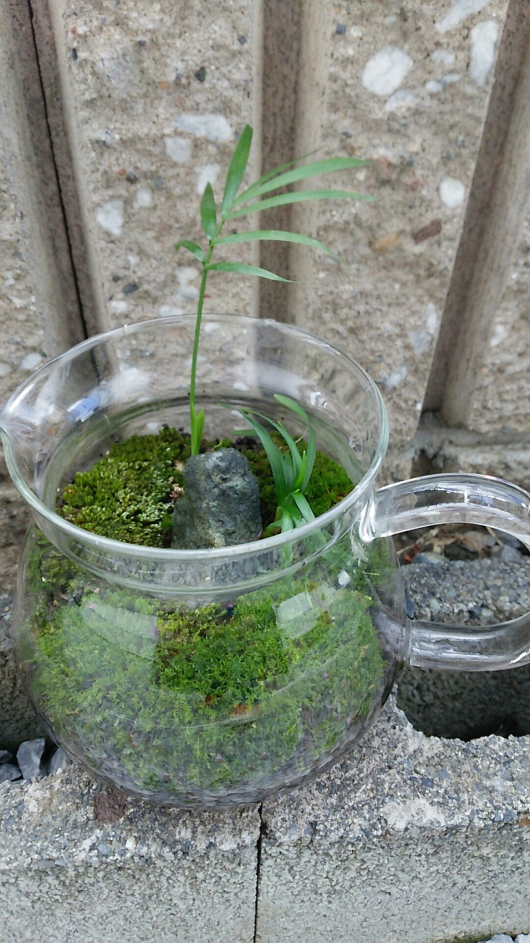 そこらにあった石、庭のリュウノヒゲを添えて。。。