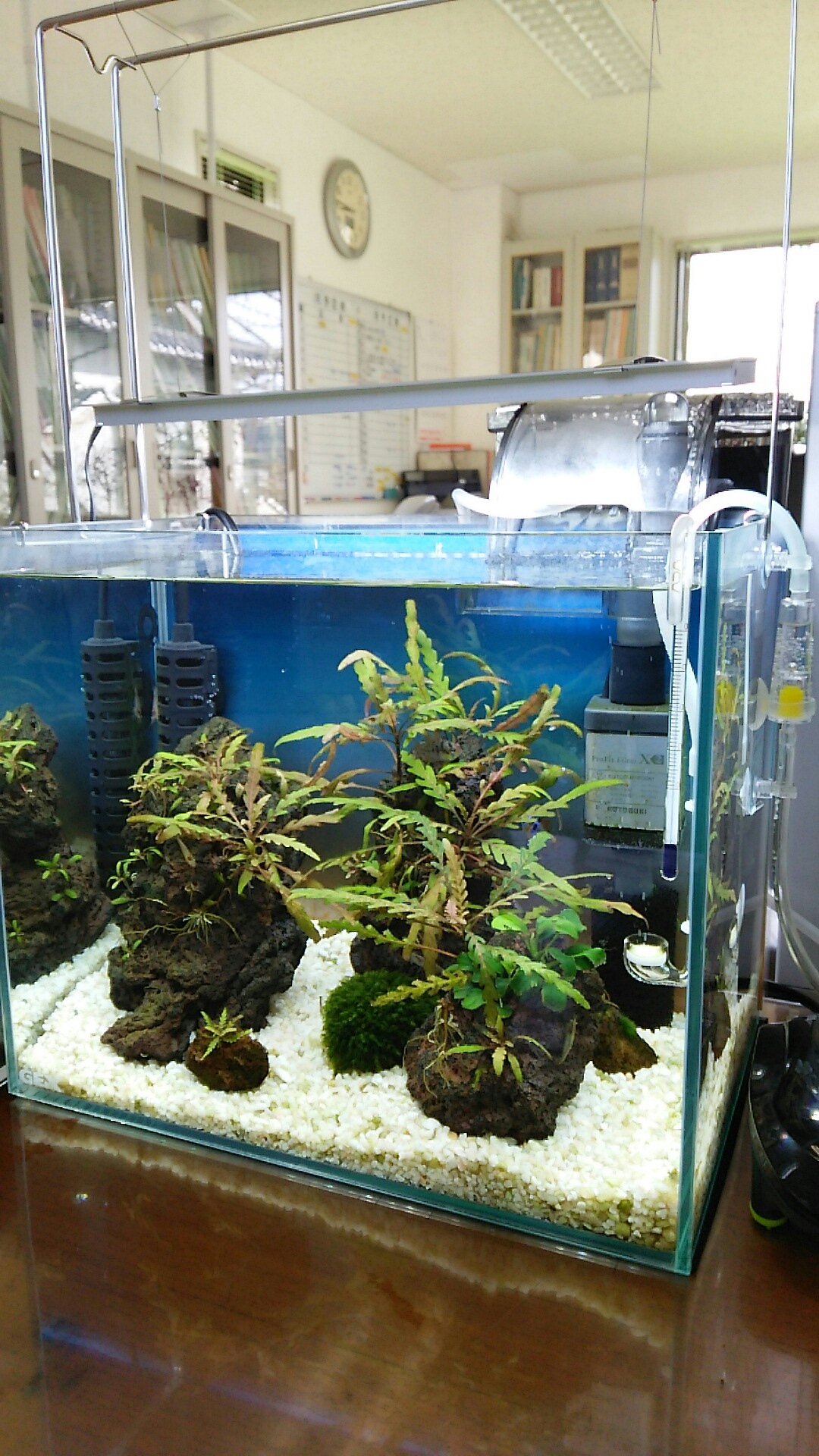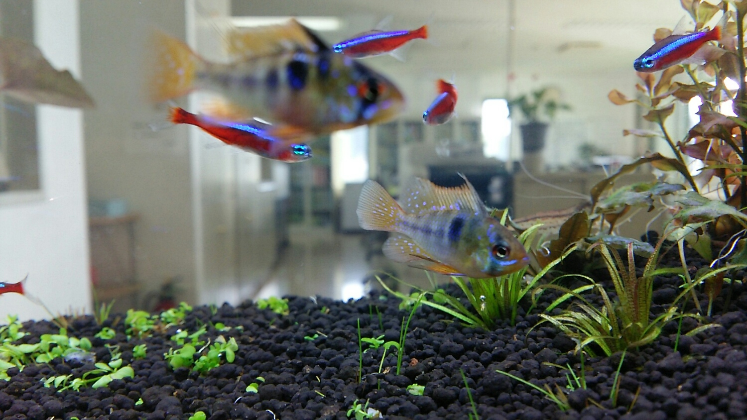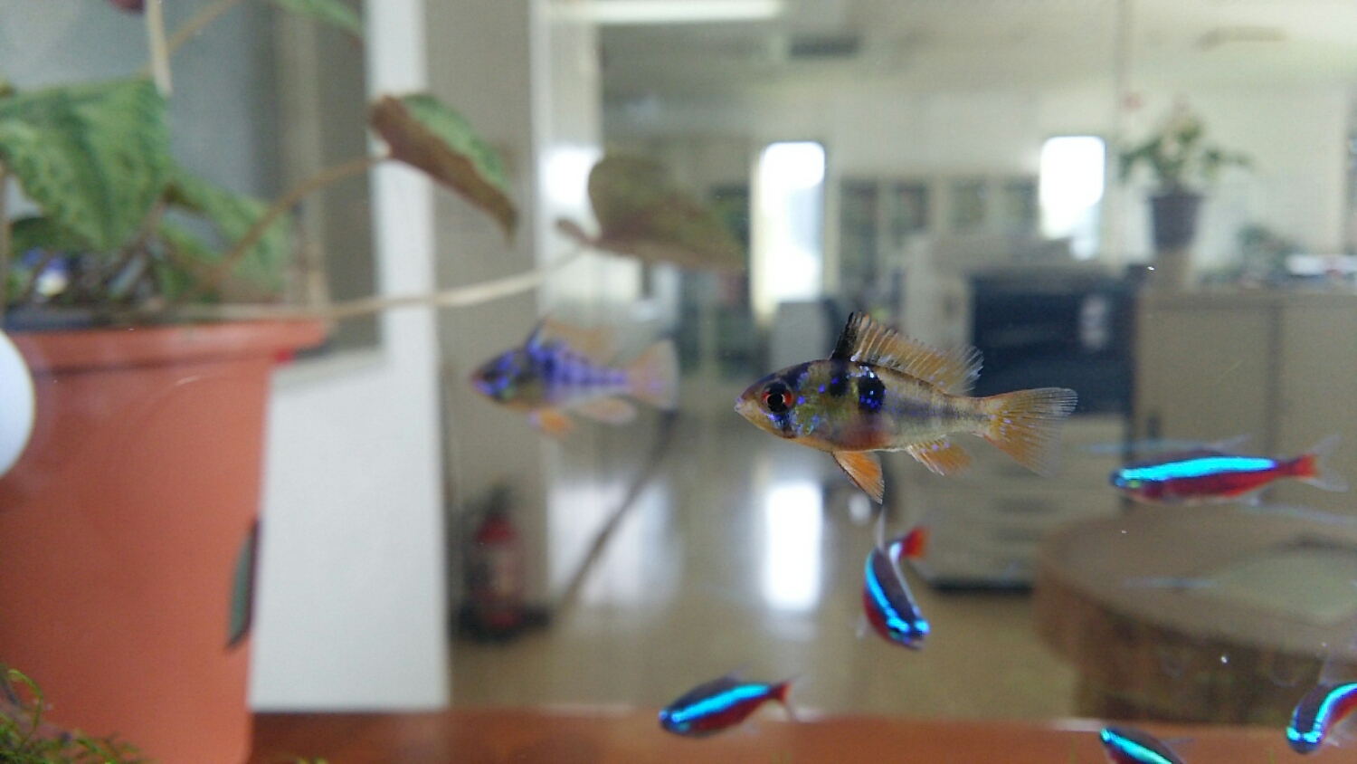 新しいお相手を手に入れた30cm水槽のラムくん。