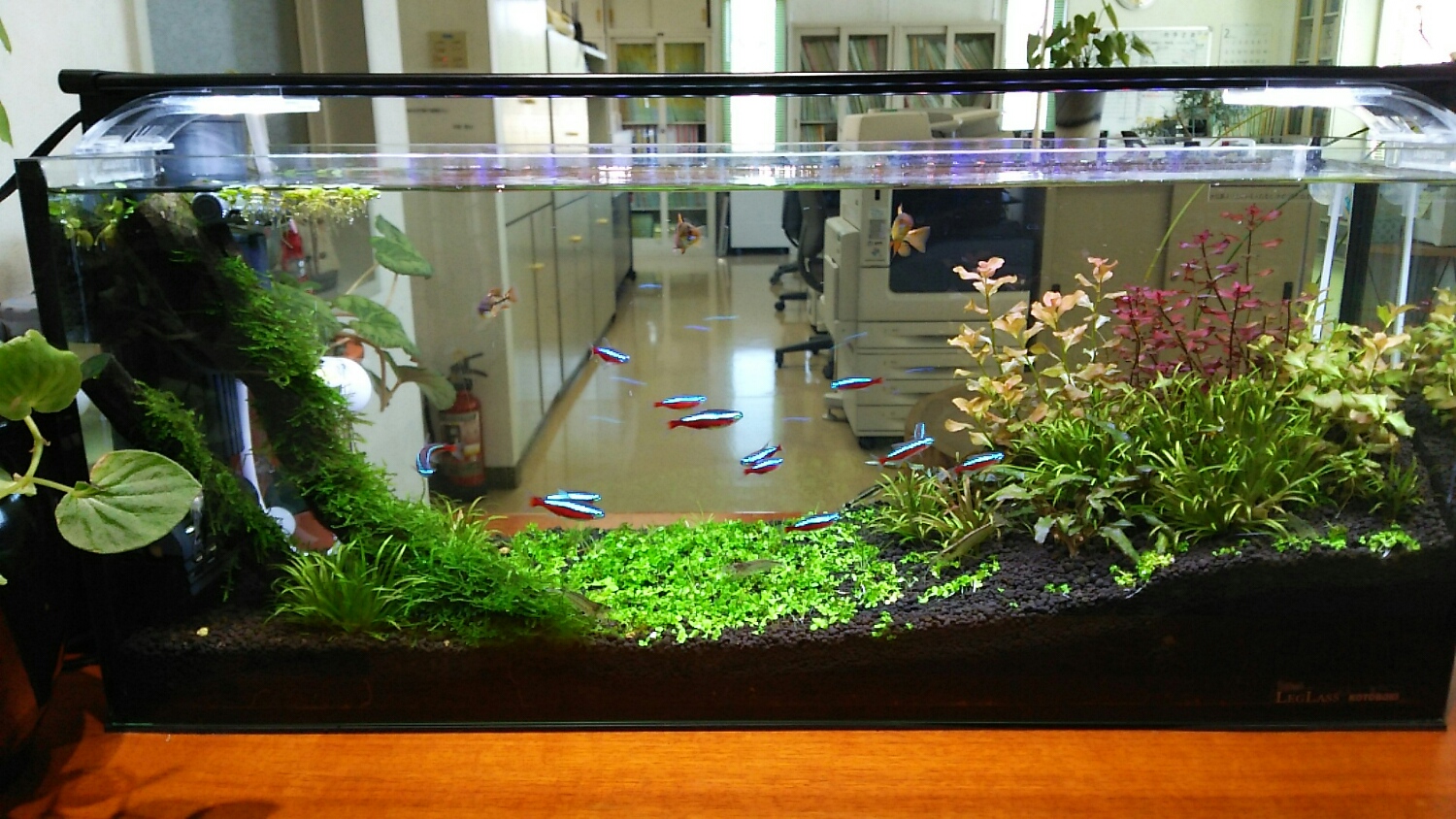 会社に水槽。楽しく出社するためには、必須です(笑)