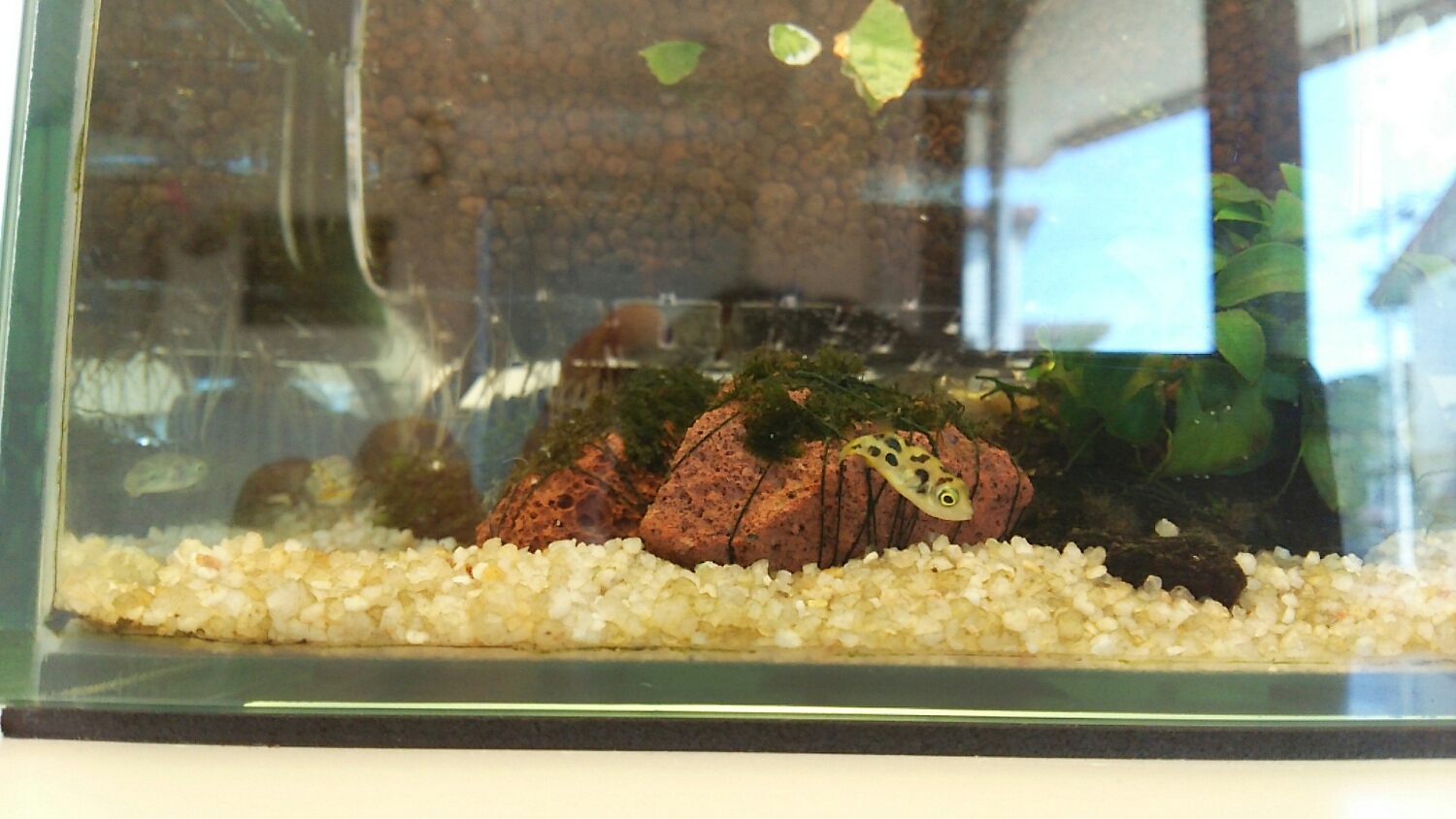 初めは、メダカだけを入れる予定で無濾過、無保温でしたが、