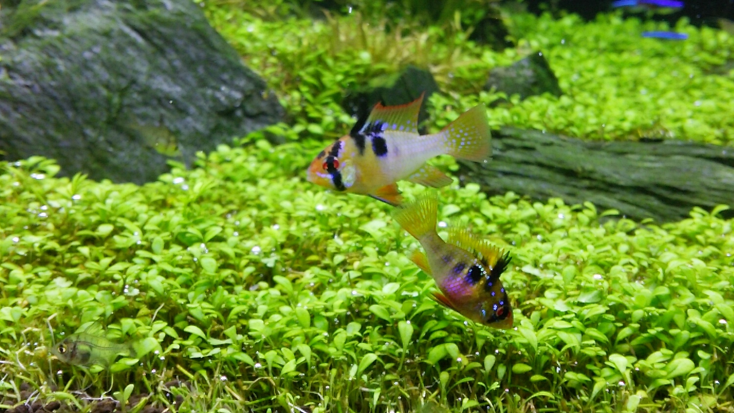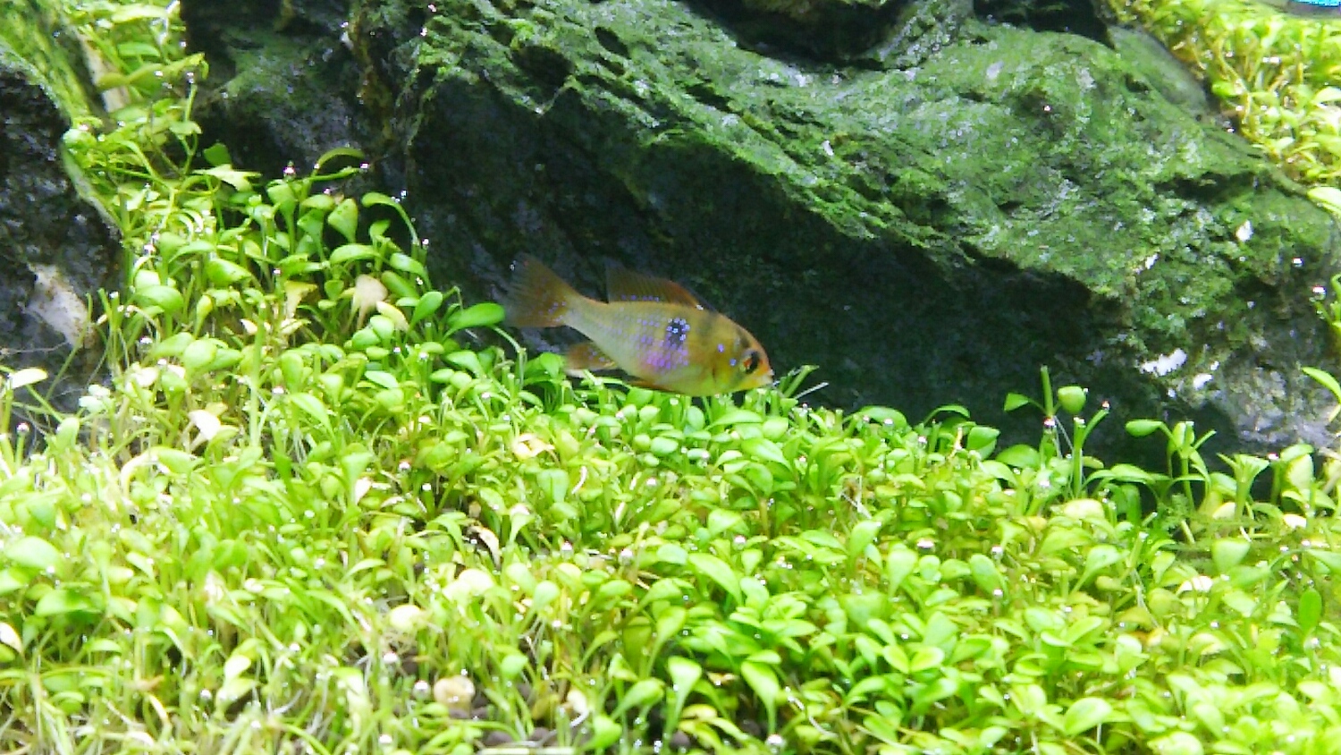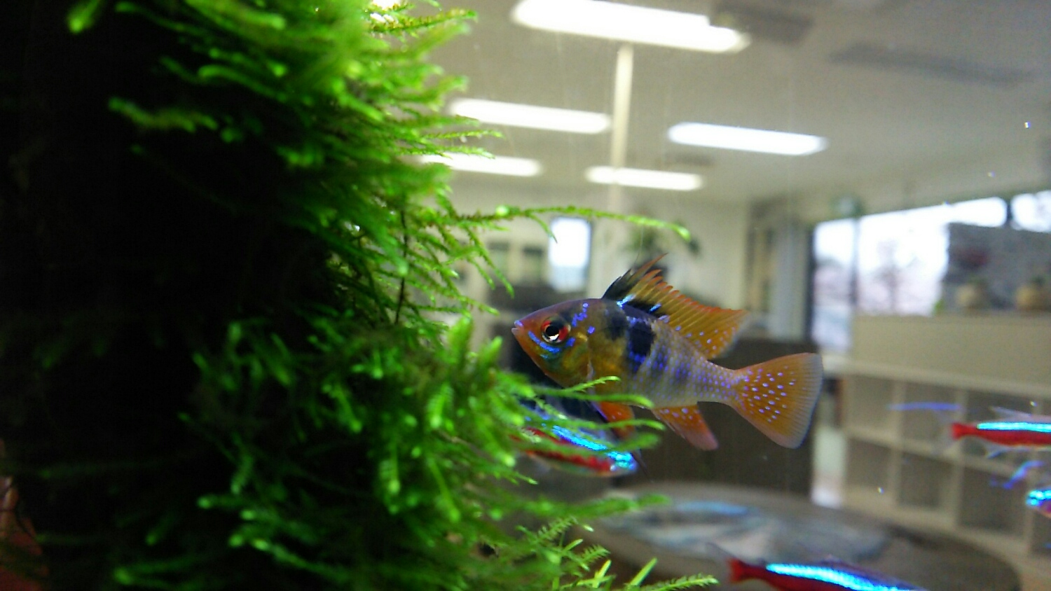 会社の30cm水槽でも、60slim水槽でも恋に破れたオランダ・ラミレジィ♀。。。