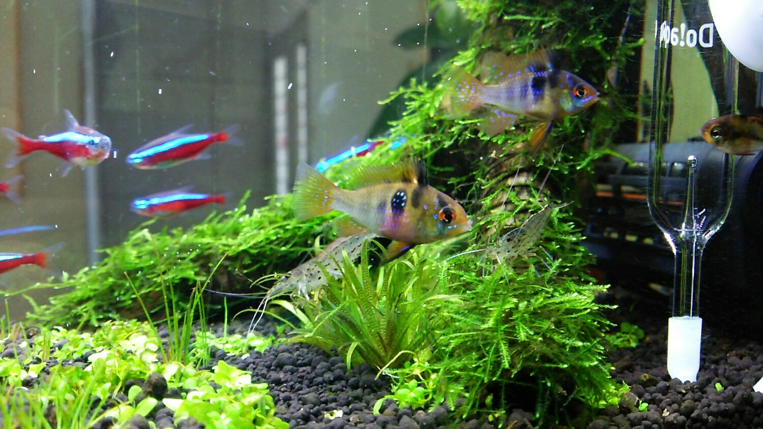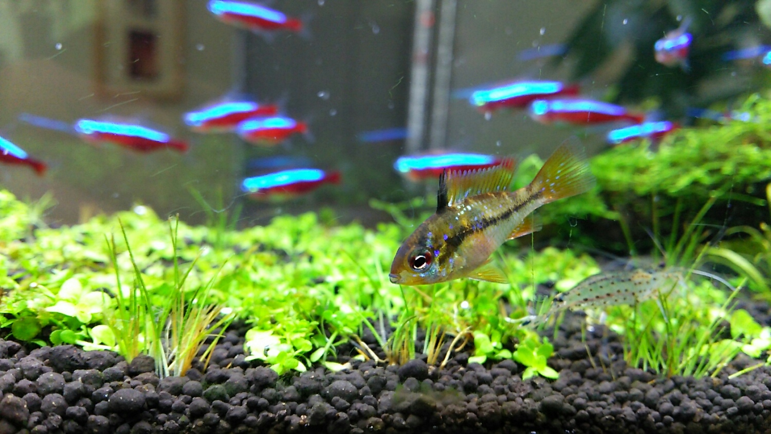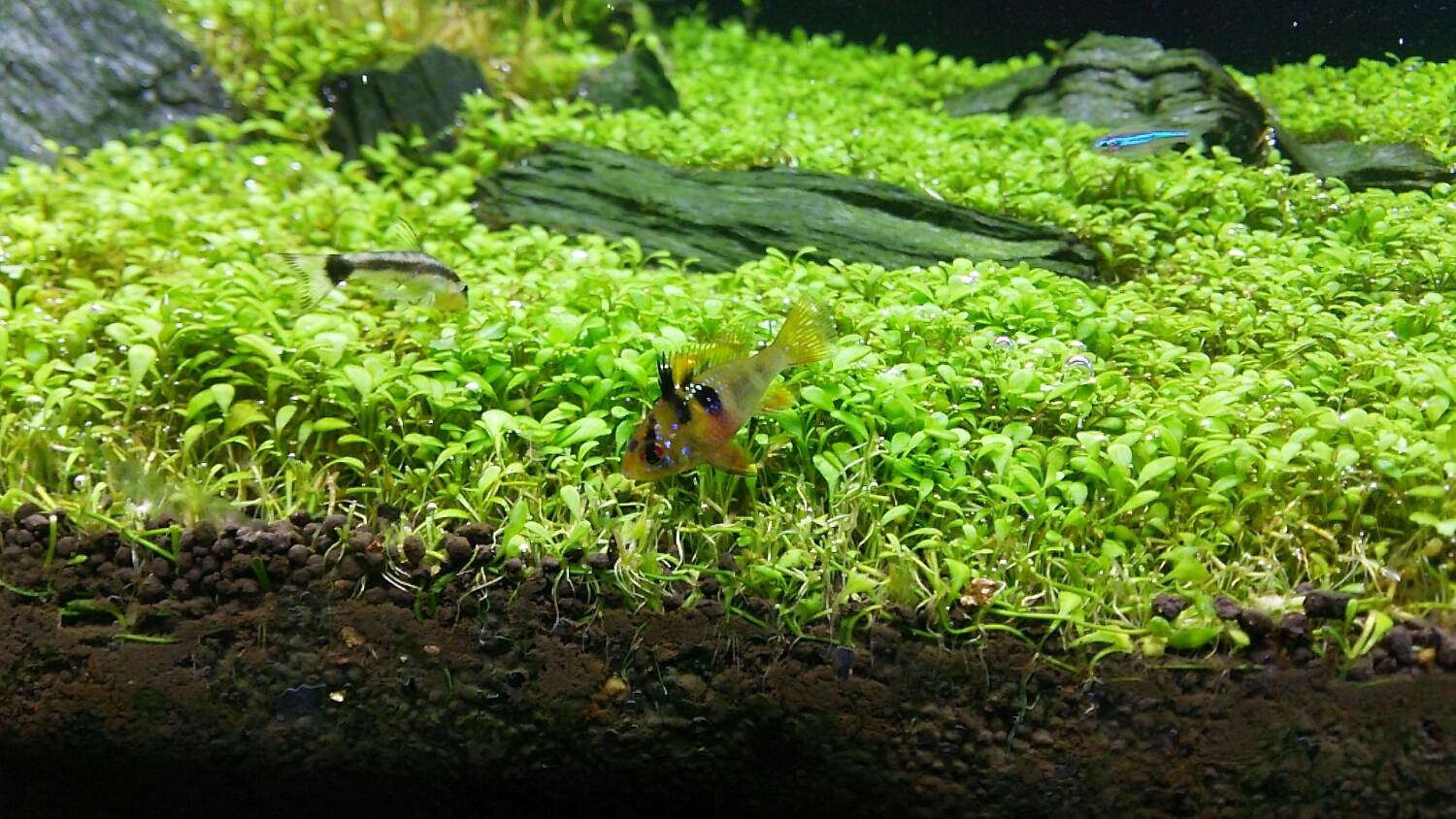 会社の30cm水槽でも、60slim水槽でも恋に破れたオランダ・ラミレジィ♀。。。