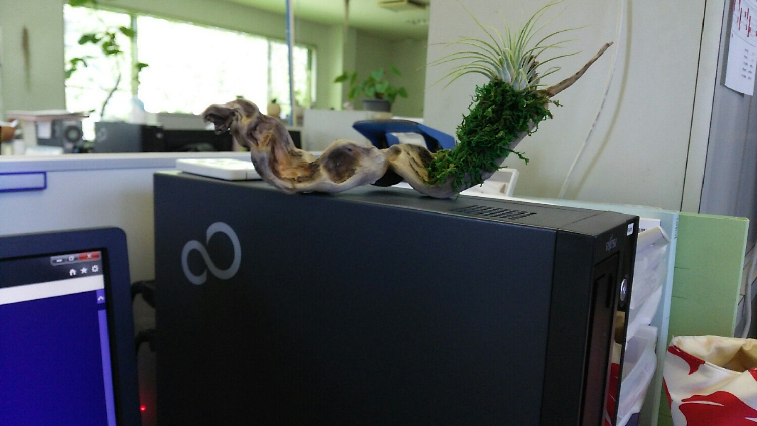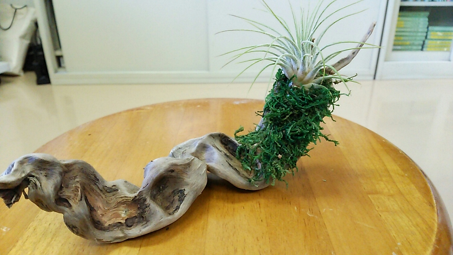 モス活着風流木に、エアープランツ。。。