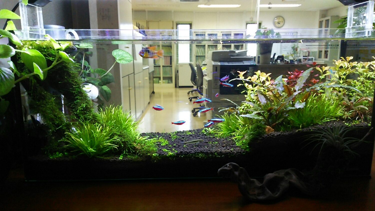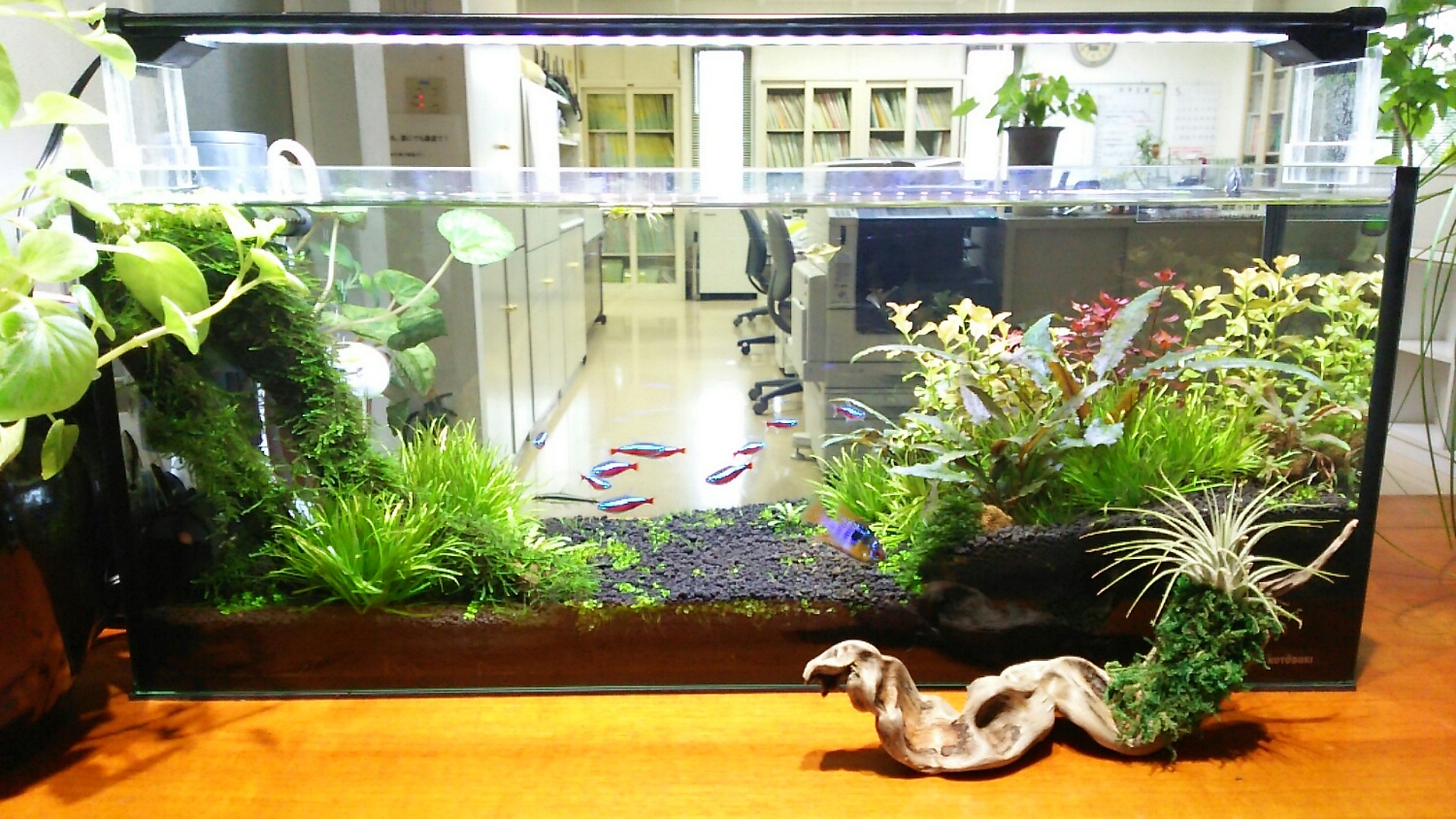 水槽の中だけではなく、水槽外にもレイアウト。。。