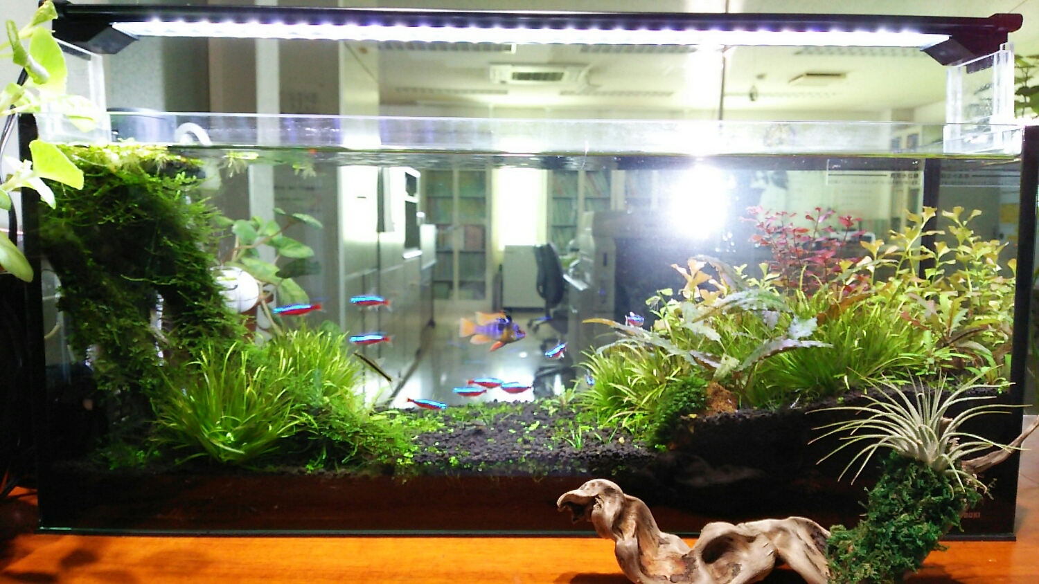 自宅の90cmに入れるのは少々怖かったので、会社の60スリムに植えました。