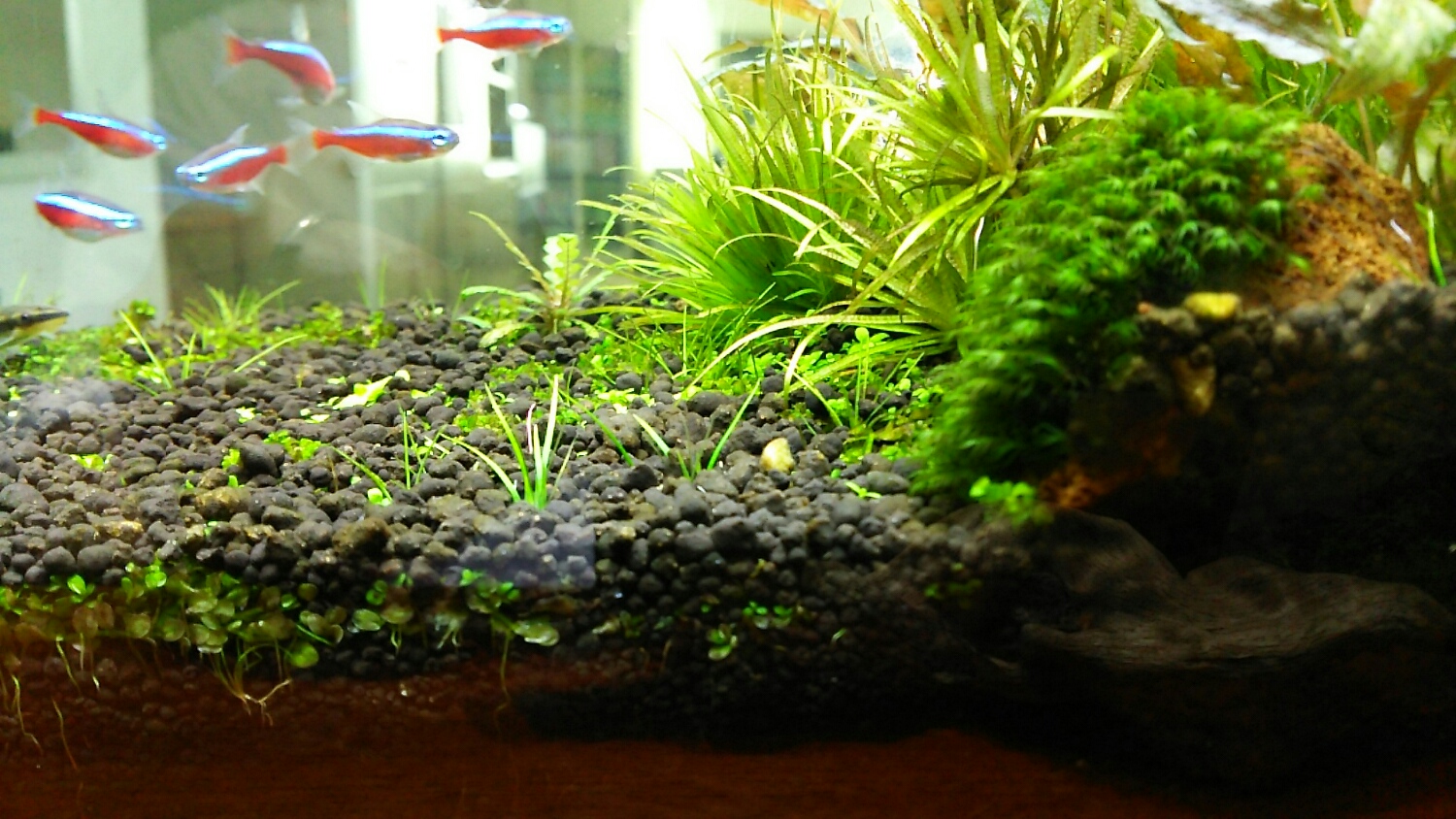 減光対策中の30cmピンナの森水槽のその後。。。