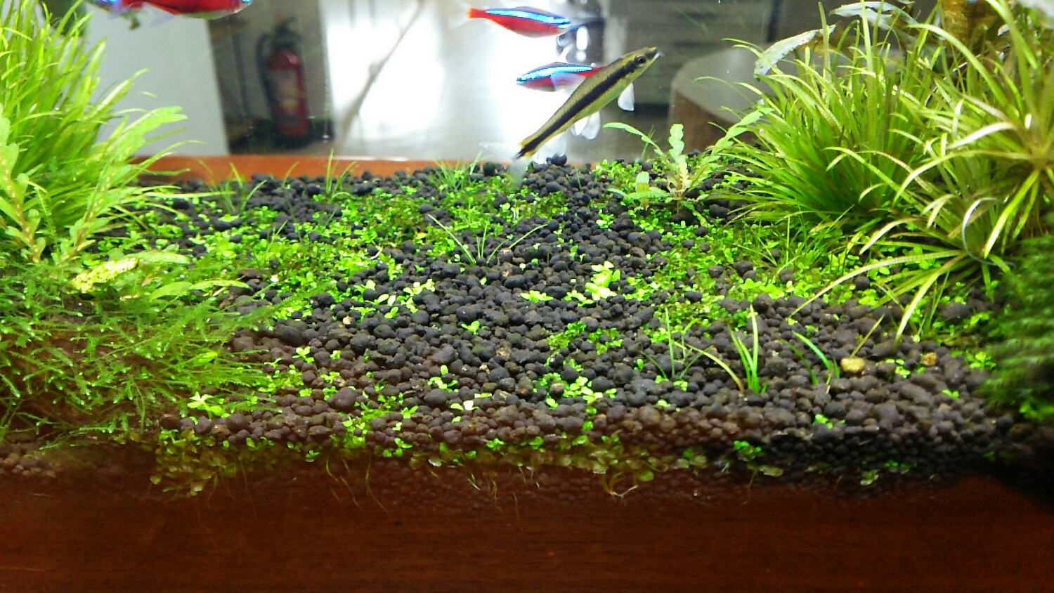 上からソイルをかけてみたニューラージパールグラスは。。。