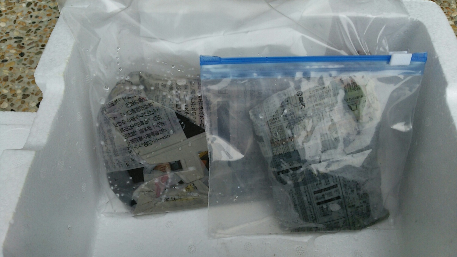 濡らした新聞紙+チャック式ビニール袋・・・