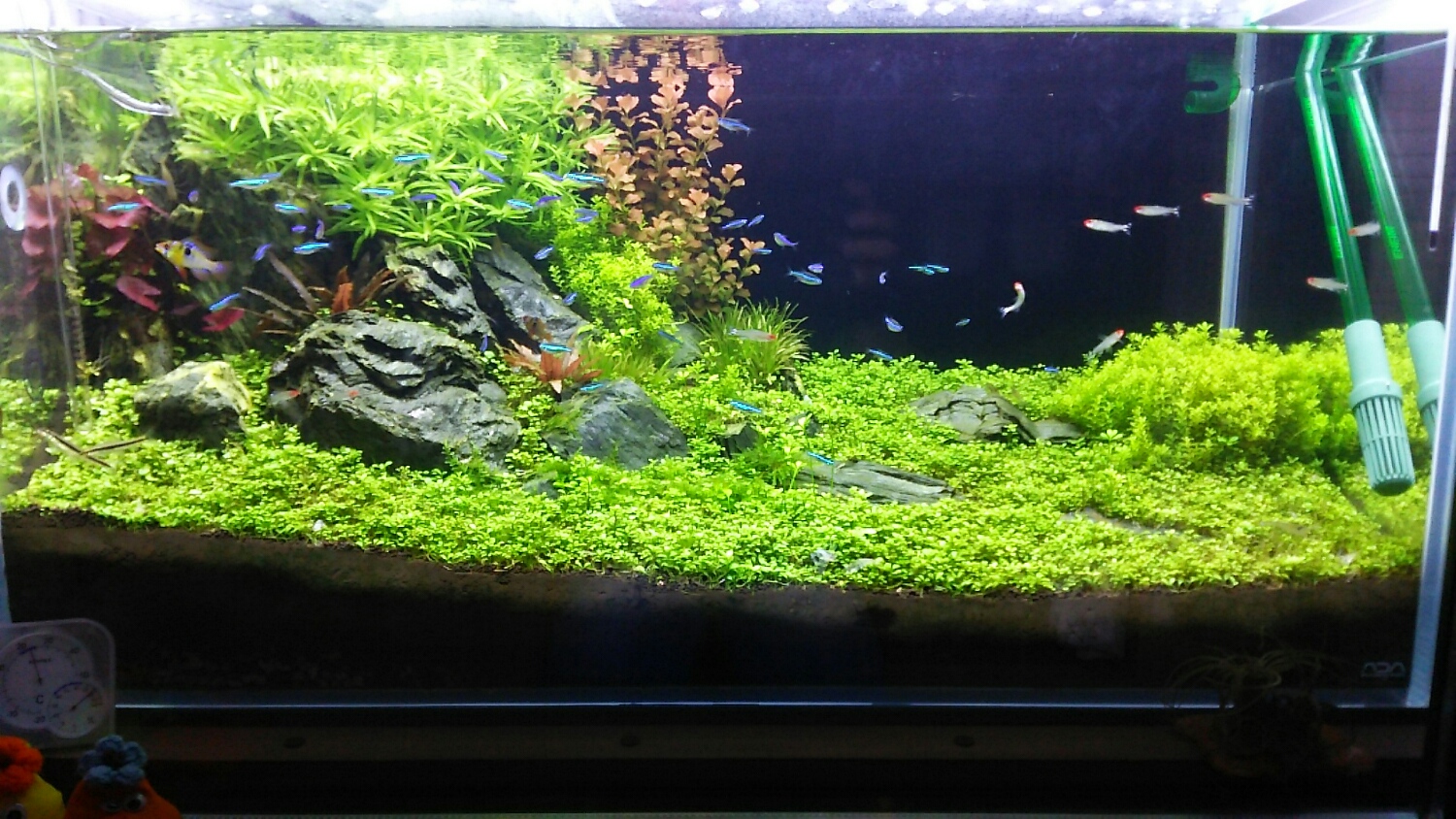 せっかくの90cm水槽なのに、もったいないかなぁ。。。とも思ったんですが、水質の安定も考慮して90に。