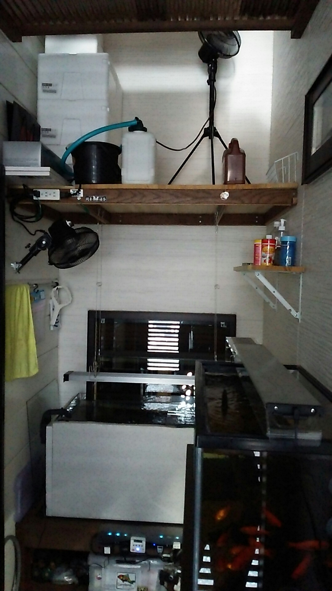 ってことで、我が家の水槽の暑さ対策は、工業扇!