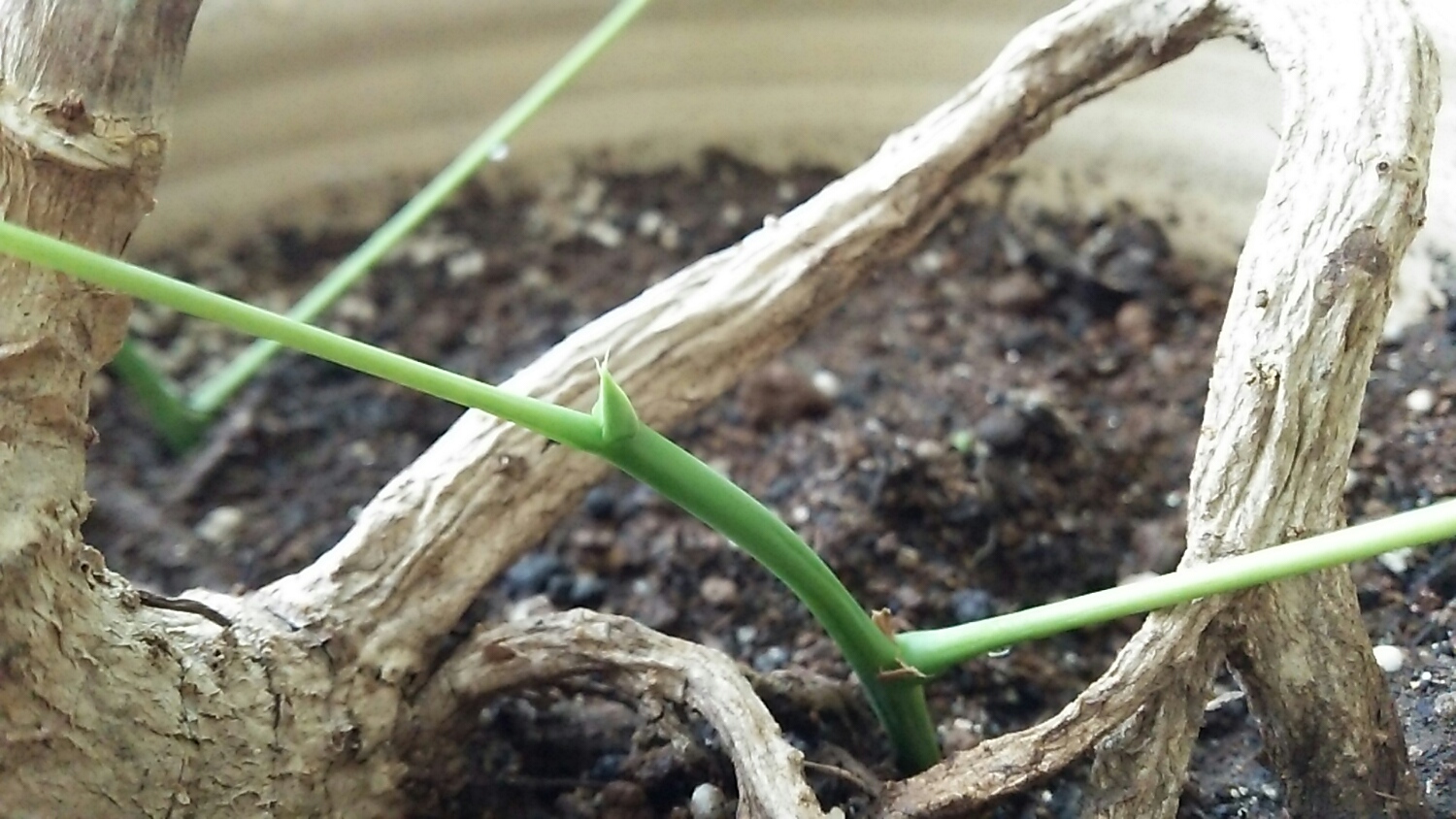 縦横無尽に新芽を伸ばして、荒ぶり始めています(-_-;)