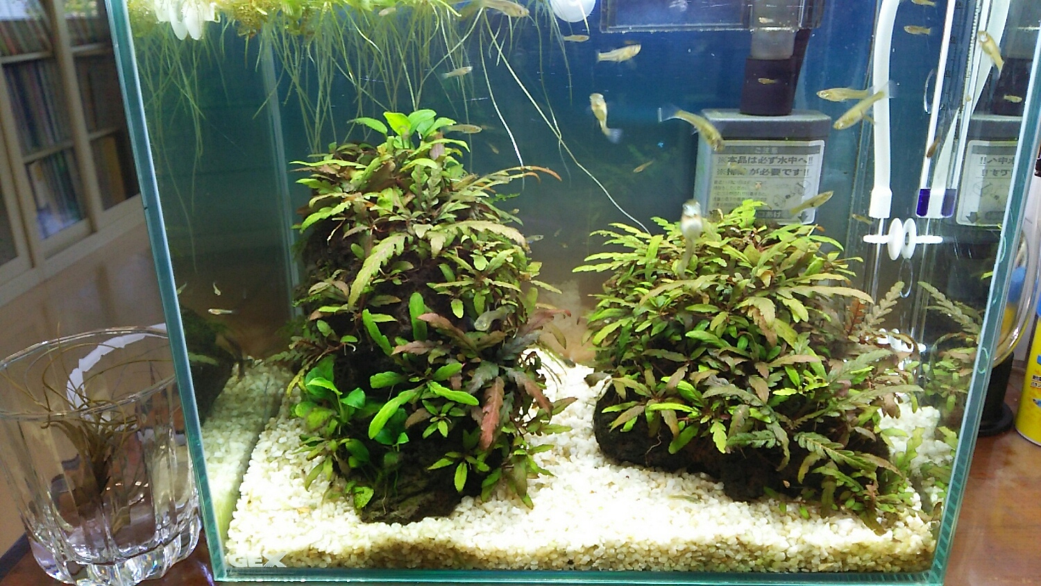 元気になってきた株は、根が延びすぎない内に30cm水槽へ。。。