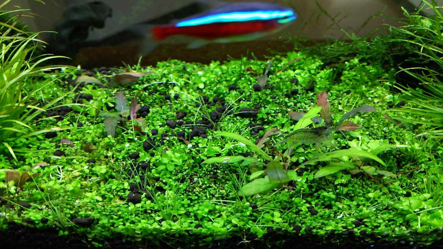 大きめの緑色の株は、60slim水槽から移動してきた株です。。。