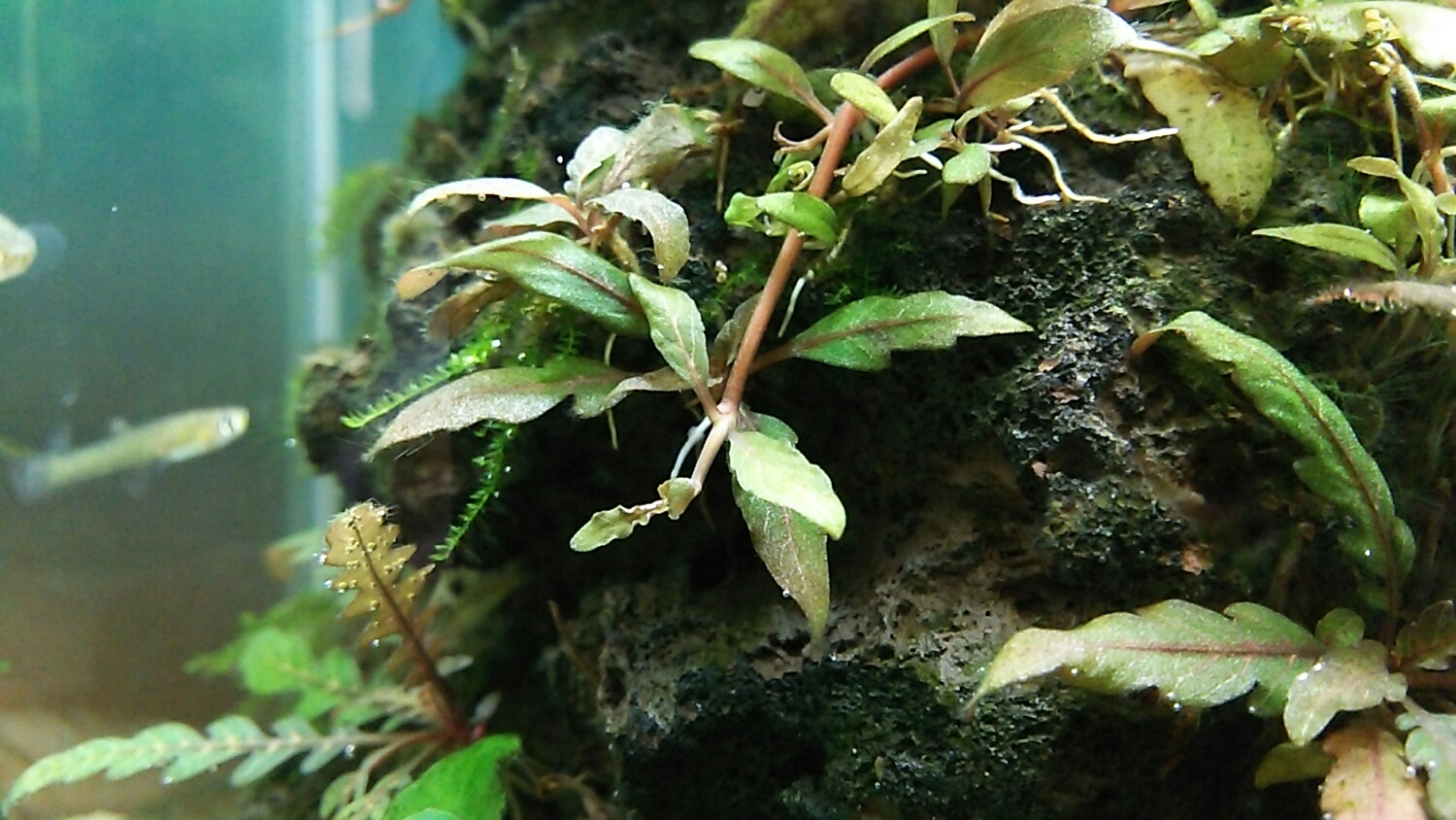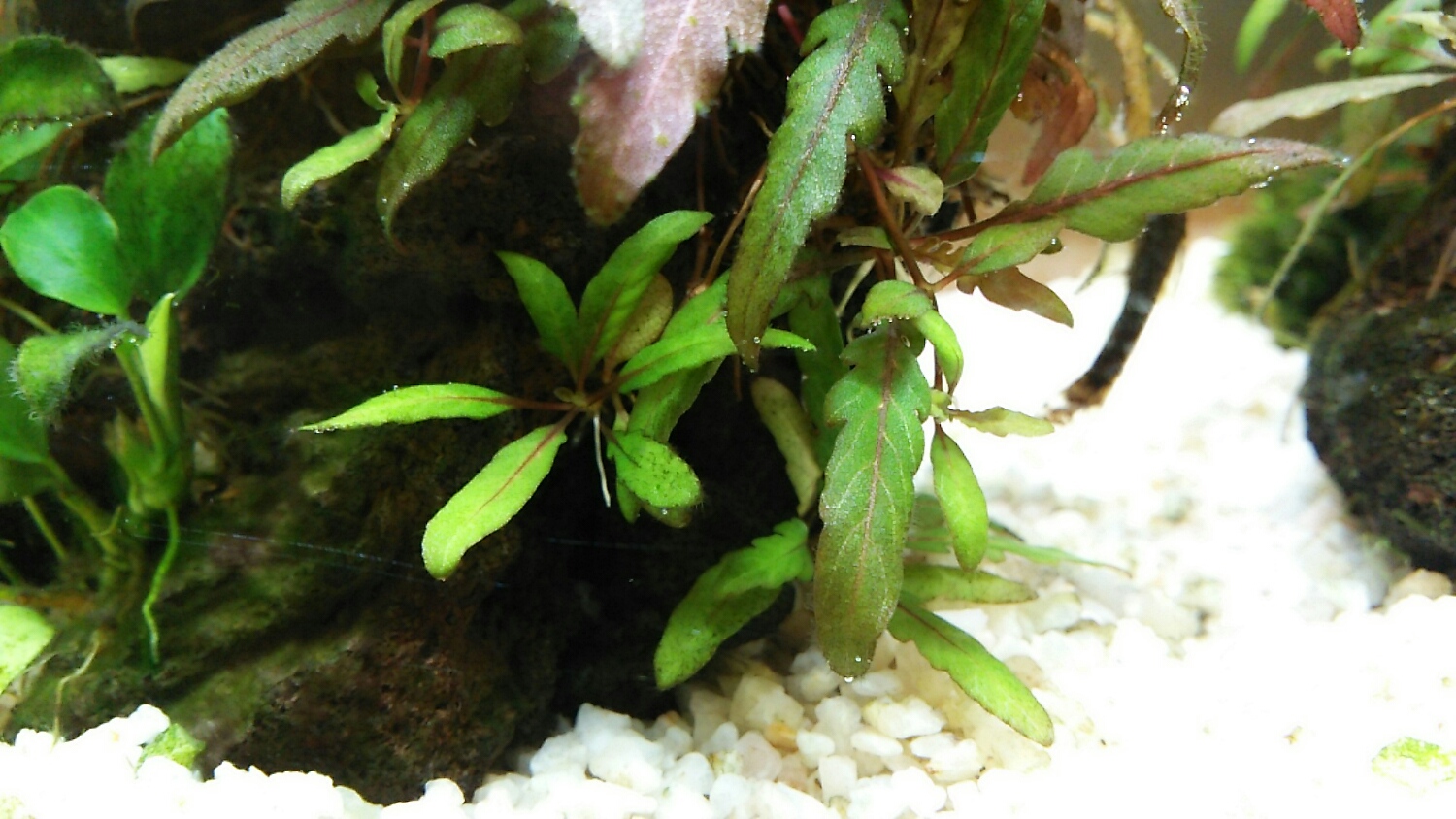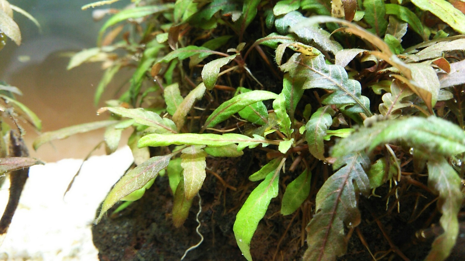 この水槽で育てると、新芽は明るい緑色ですが徐々に赤っぽくなります。