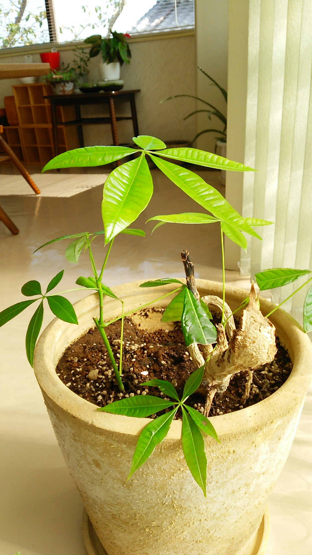 以前、挿し木した『パキラ』のその後ですが、グイグイと伸びて来てました!
