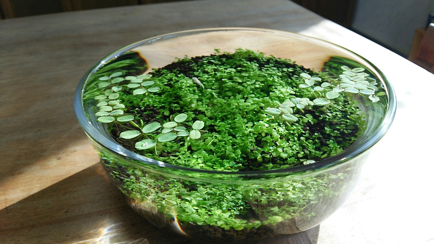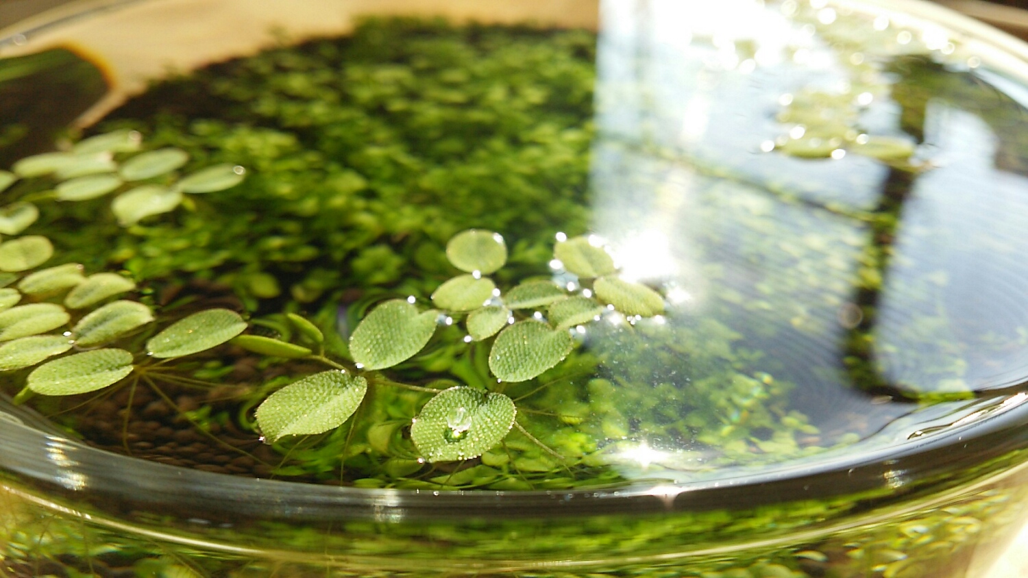 メダカの隠れ家的にサンショウモを浮かべてあるんですが