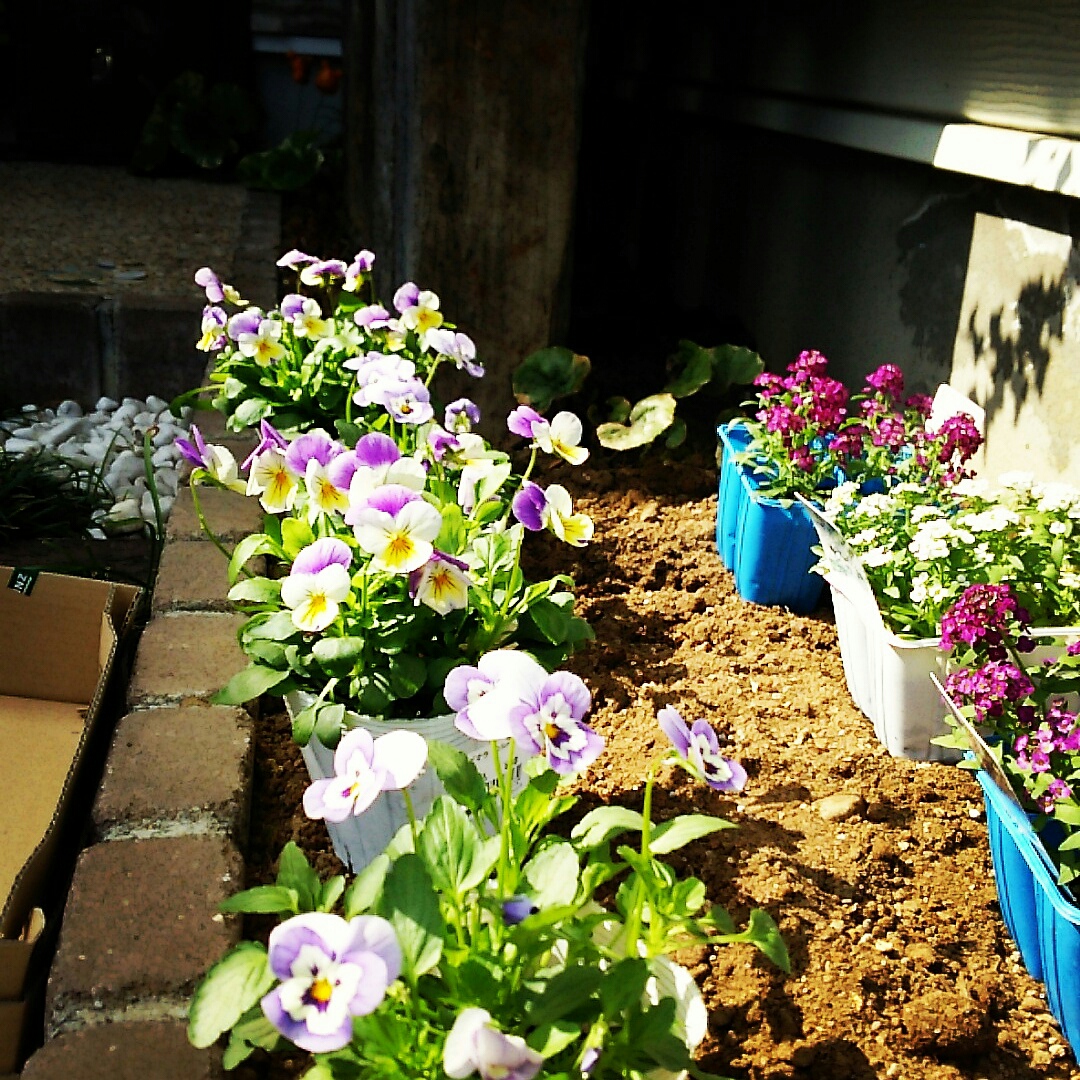 玄関先のちょっとした花壇のお花を植え換えました(^^)v
