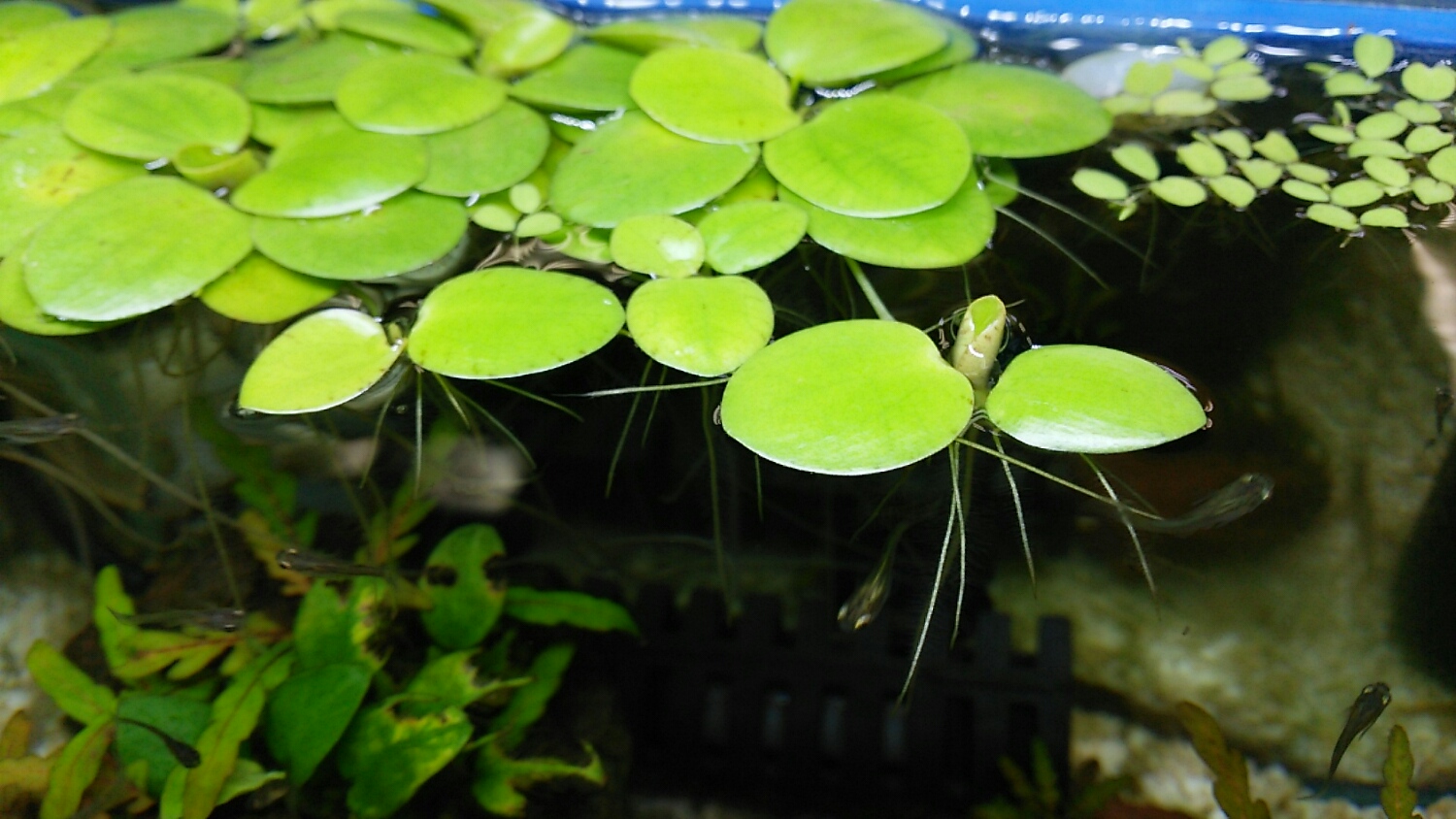 浮き草、やりやがりますね。。。つねに光を浴びて、水分も栄養分も摂取できて。。。