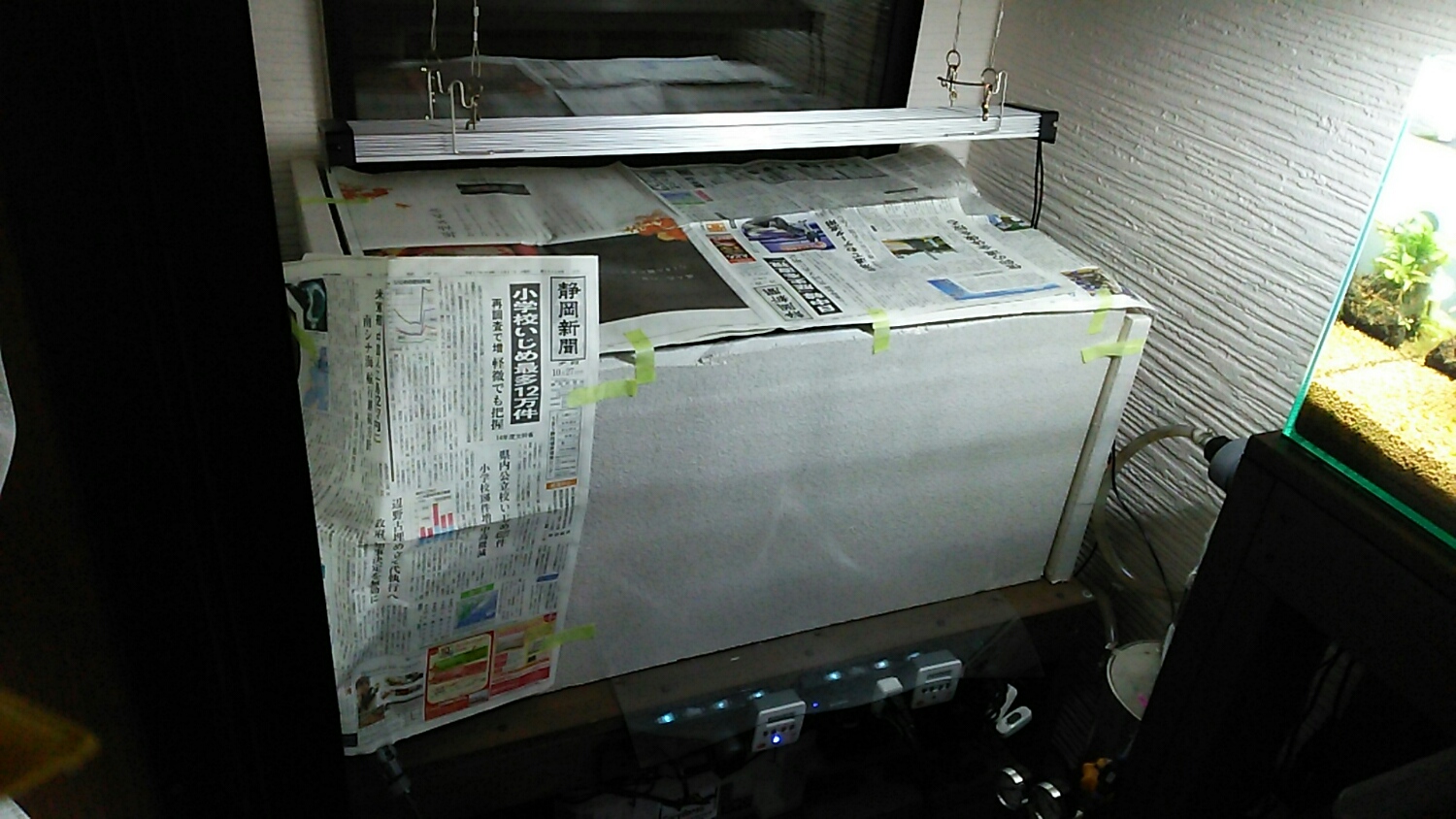 『太陽のコマチ水槽』(双子さん命名)の裏側、くもりガラス調のシートを剥がした。。。のは以前お伝えしました。