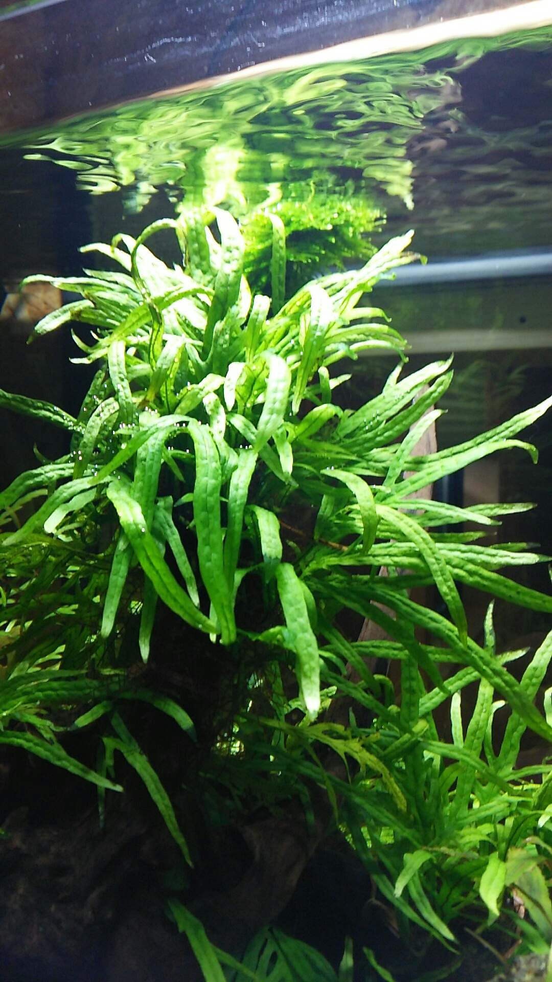 90cmスリム陰性水草水槽のメインであるミクロソリウム・トライデント・・・