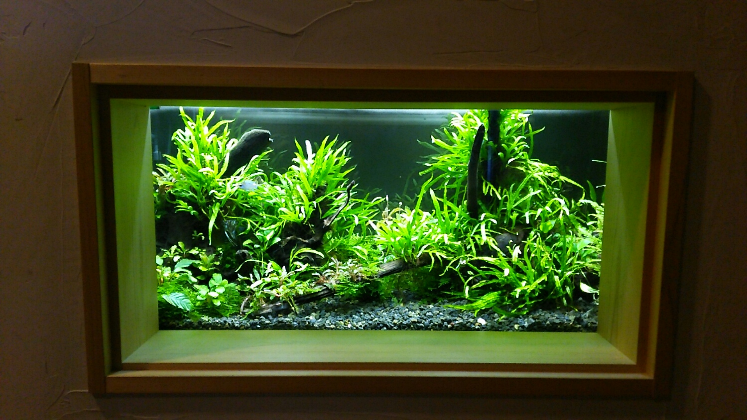 枠のサイズよりも大きな水槽にすれば器具も隠せるし、裏からの印象もまた楽しめるしいいですね!