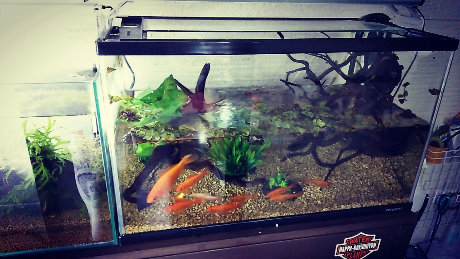 金魚の水槽から水漏れ発覚。。。(-_-;)