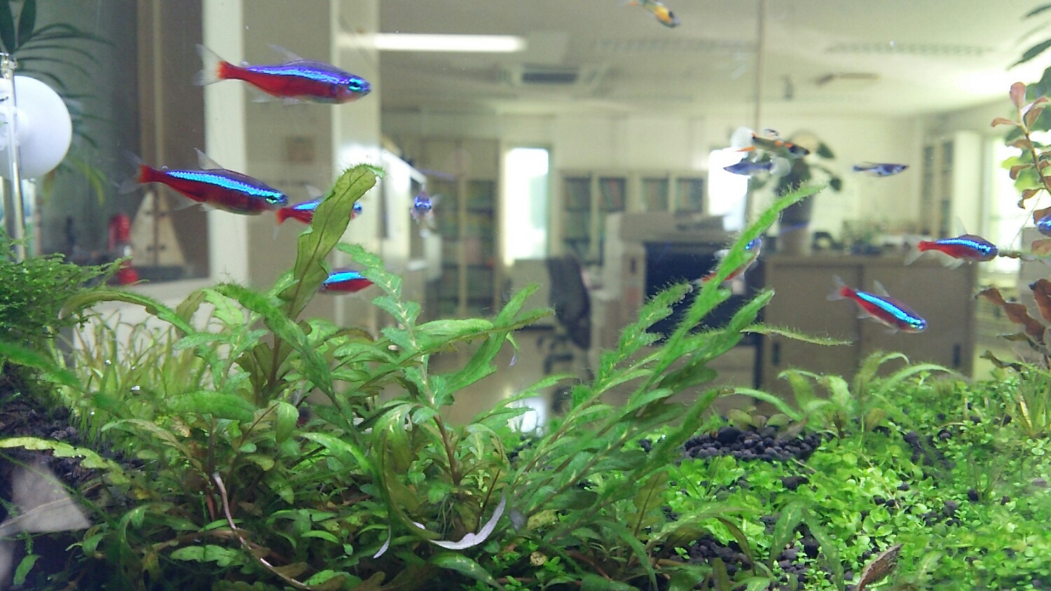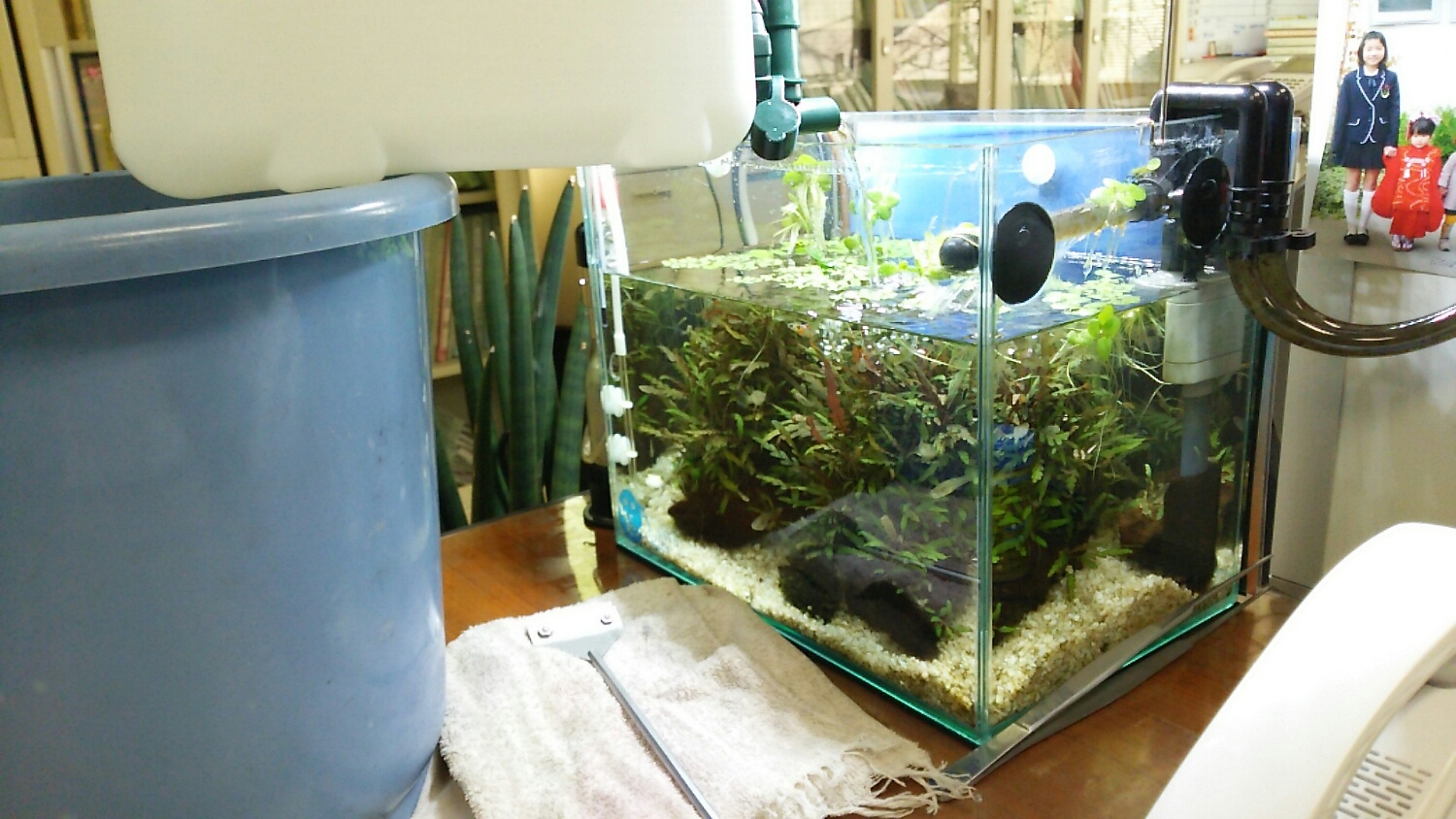 絶賛コケ増殖中な会社のウエルカム水槽。。。