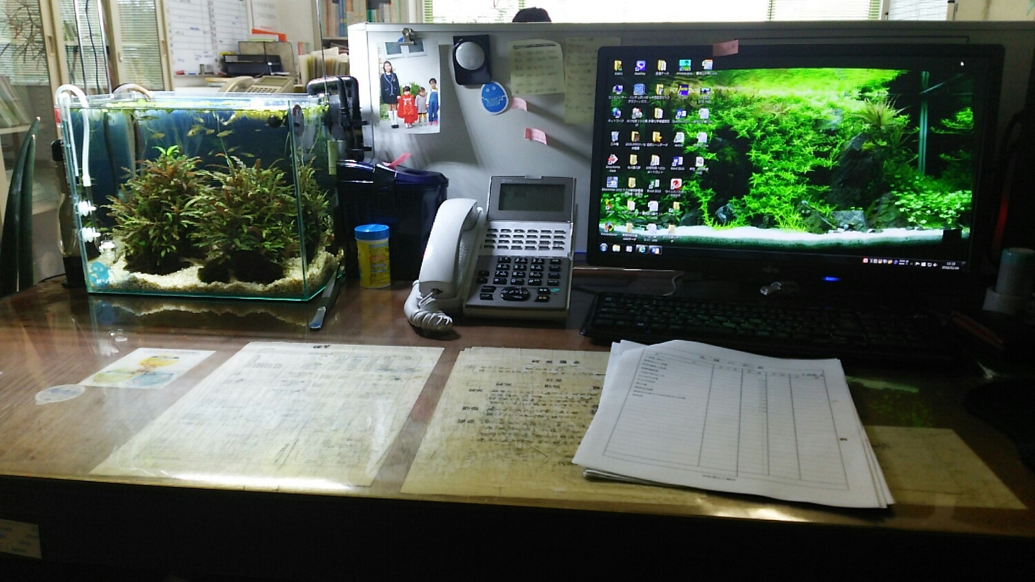 デスクの水槽は、ウエルカム水槽を立ち上げた時、