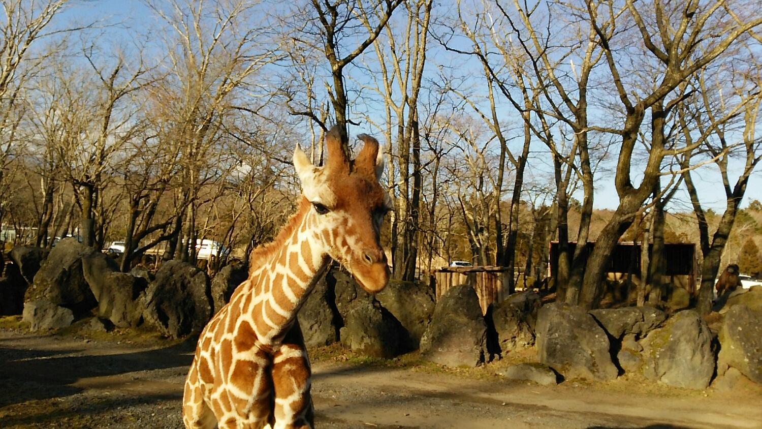 子どものキリンが車の前を通過してくれましたw