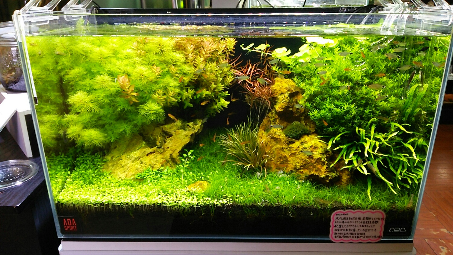 それを隠すように、流木やら気孔石やら水草を配置してあって、見応えありました!