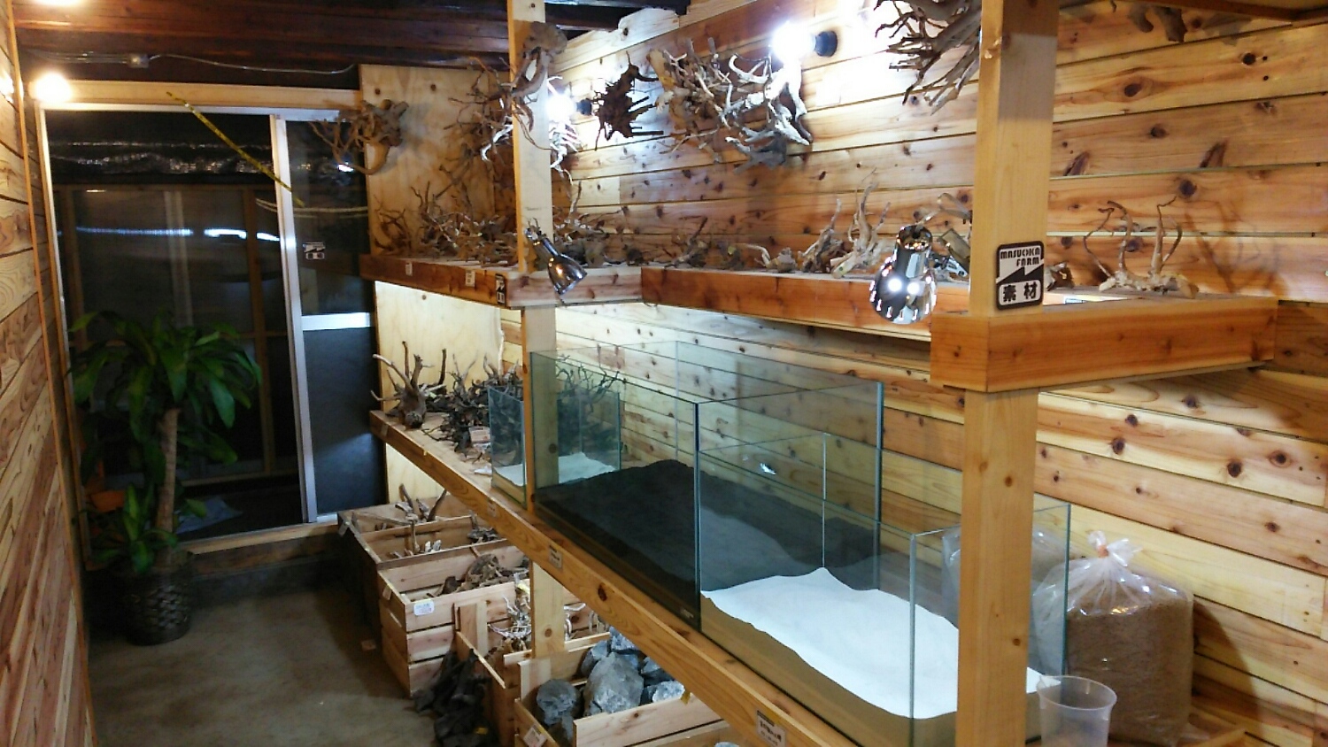 手作り感のある陳列棚、仮想レイアウトして、素材を選べるって言う水槽w