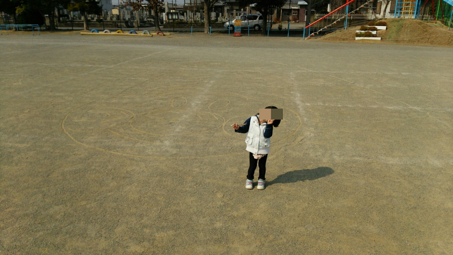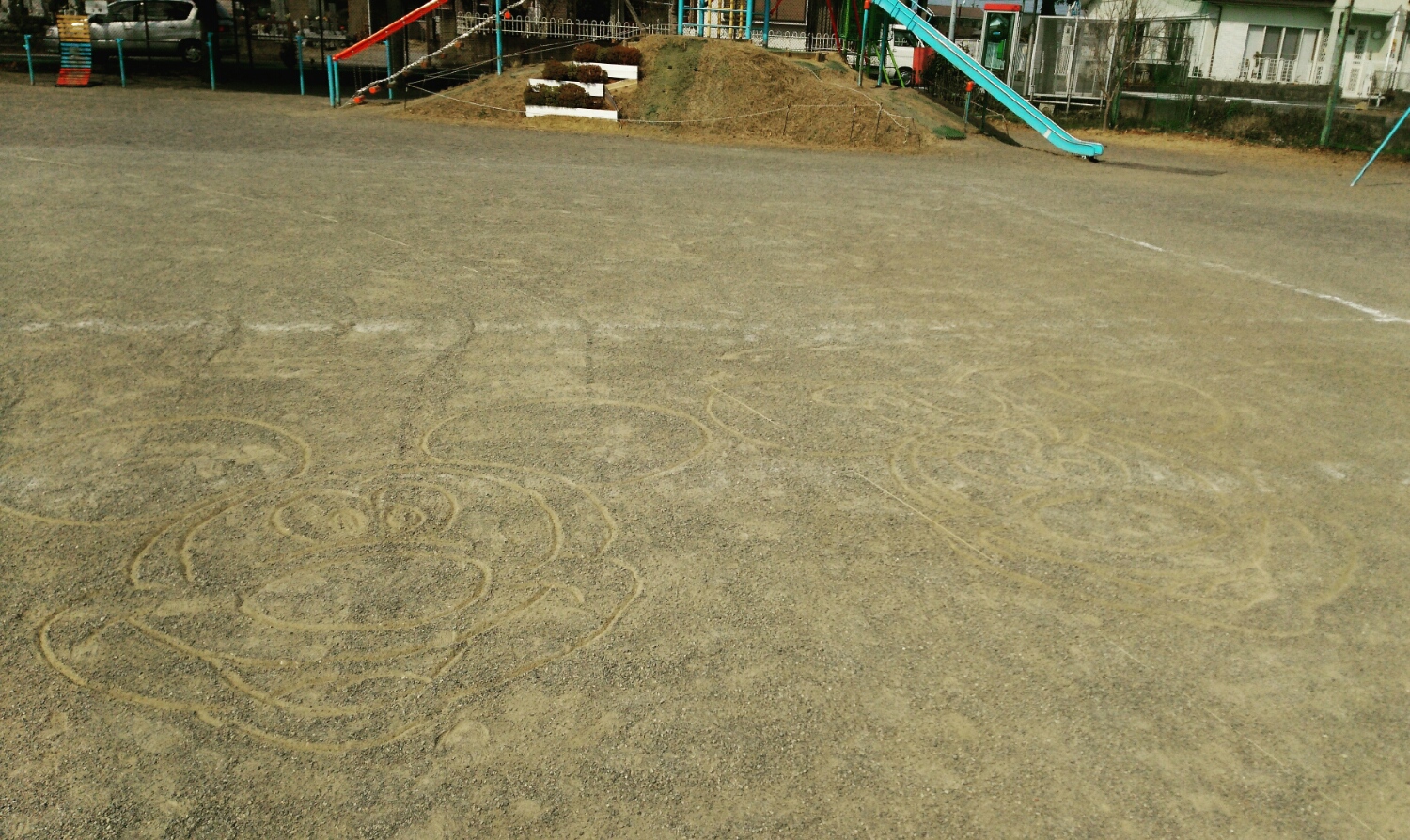 校庭に『アンパンマン』の落書きをして。