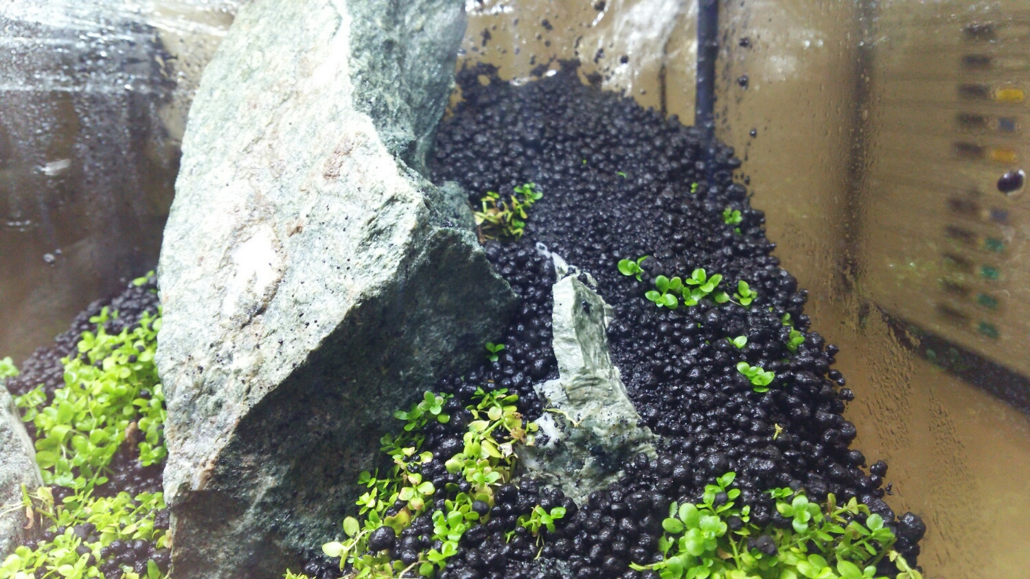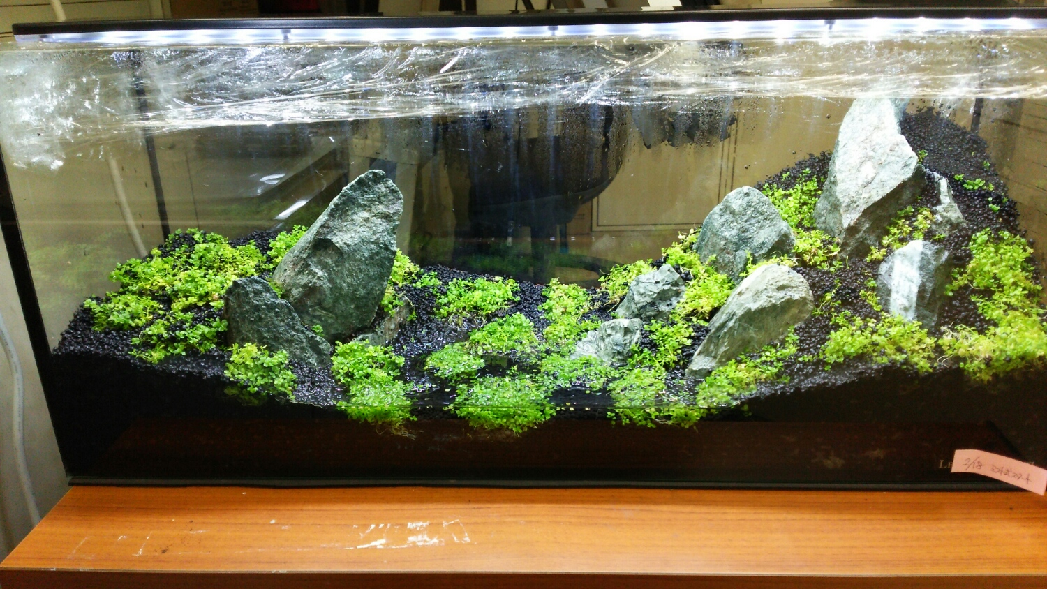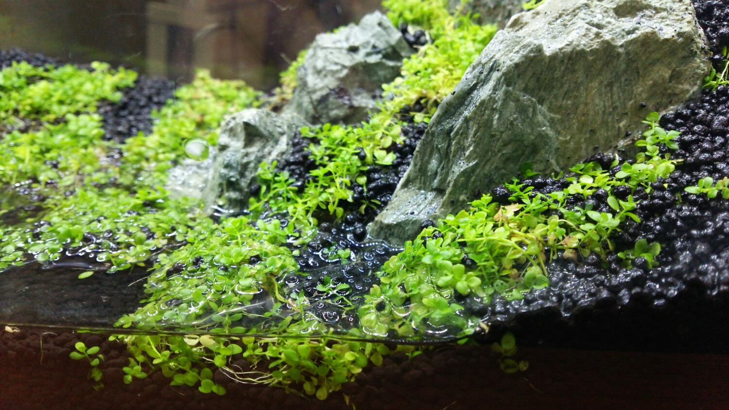 注水の予定は、まだ未定ですが、右上の傾斜部分のソイルから葉っぱが生え揃ったら・・・ですかねぇ(^_^;)