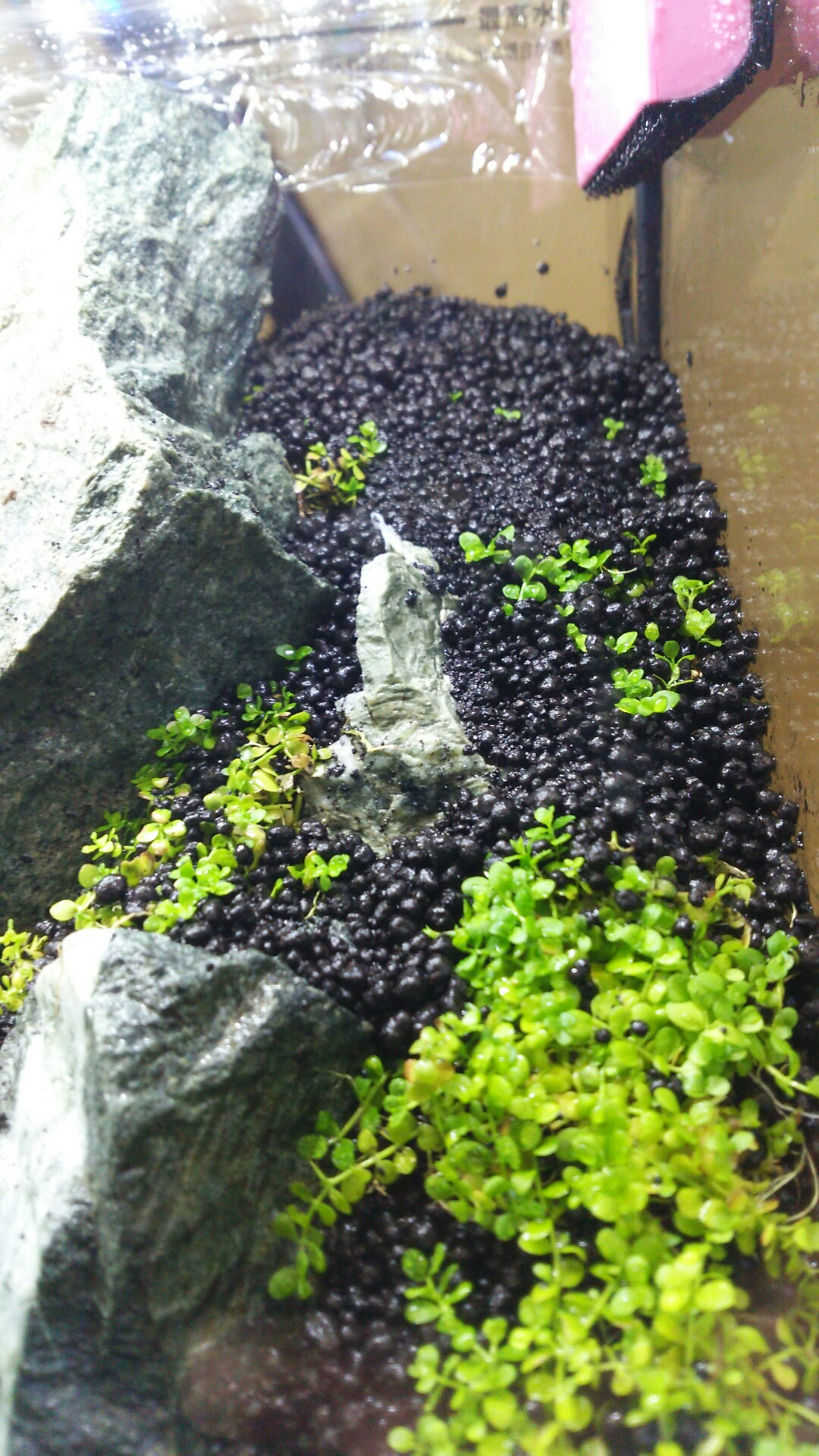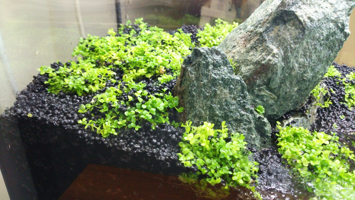 今回は、余った水槽で完全にお試しですが、綺麗に絨毯になるようなら、注水後の置き場所を考えようかなぁ。。。(笑)