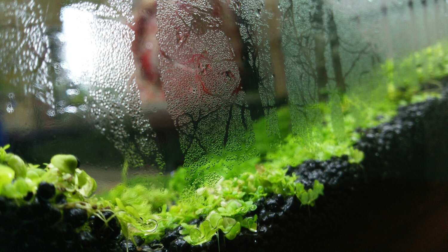 ミスト式水槽のガラス面に、気になる足跡?が。。。