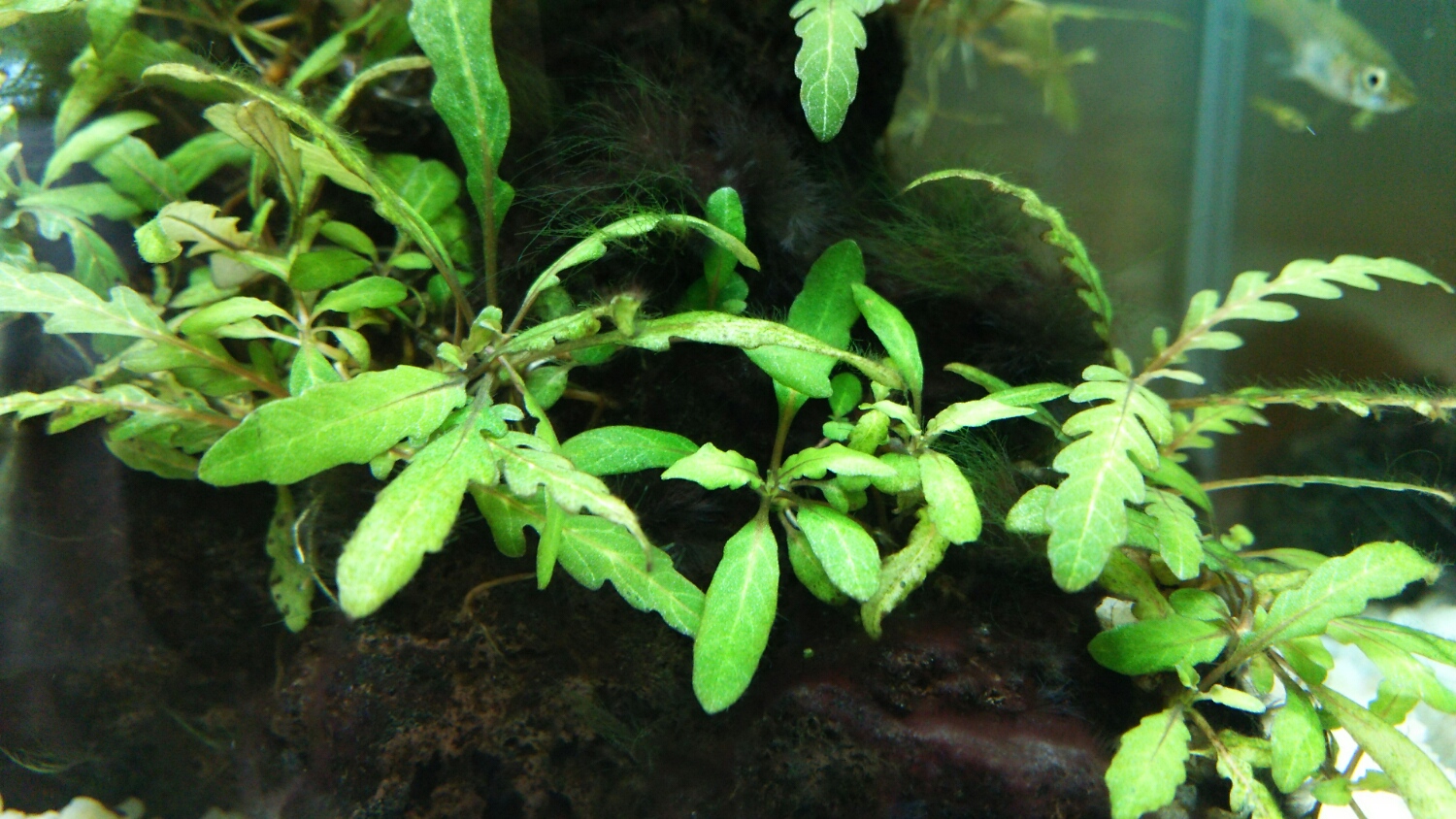 ピンナにコケが付いていない!!!ウチのはモジャモジャですw毎週水替えしてるんですけどねぇ・・・緑の発色もきれいだし・・・裏山ですっ!