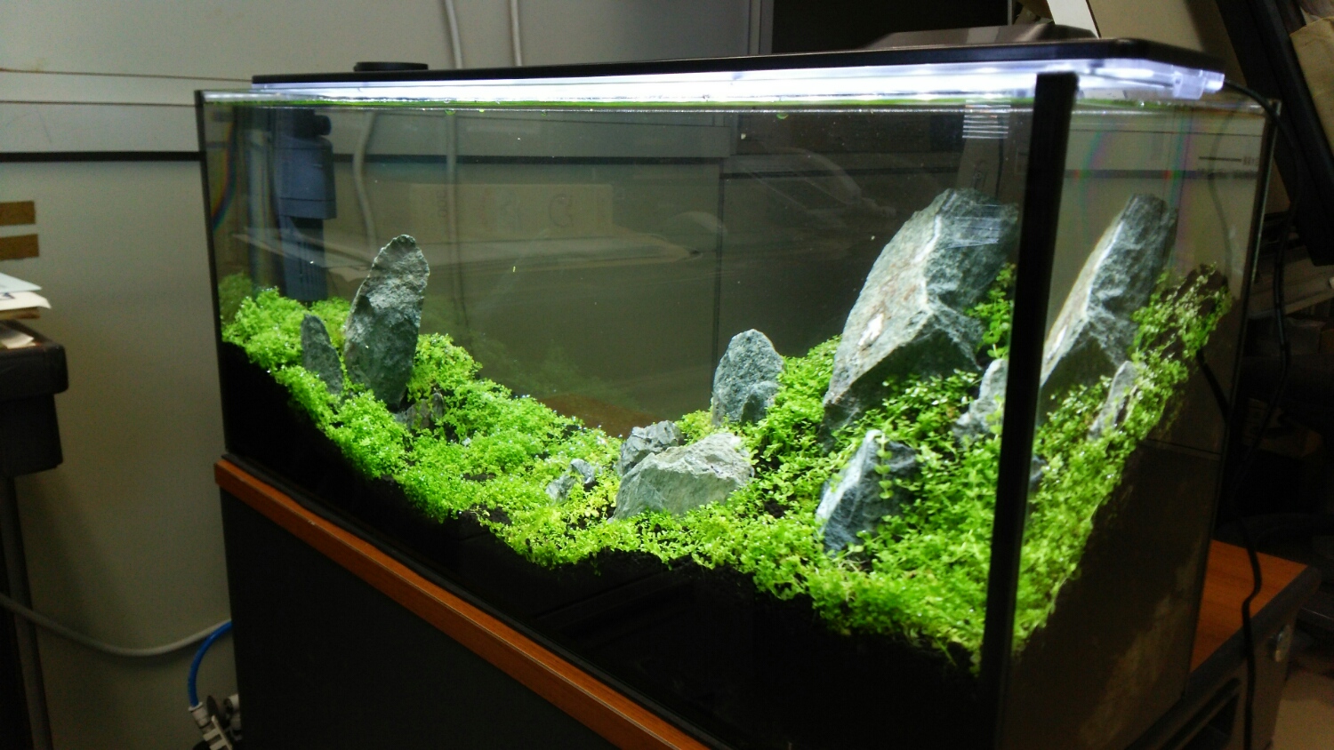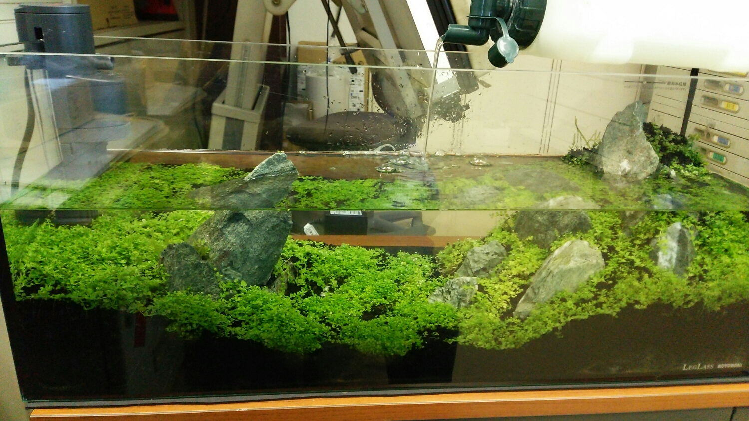 照明を点灯し、フィルターを稼働させると同時に、CO2の添加も開始します。。。