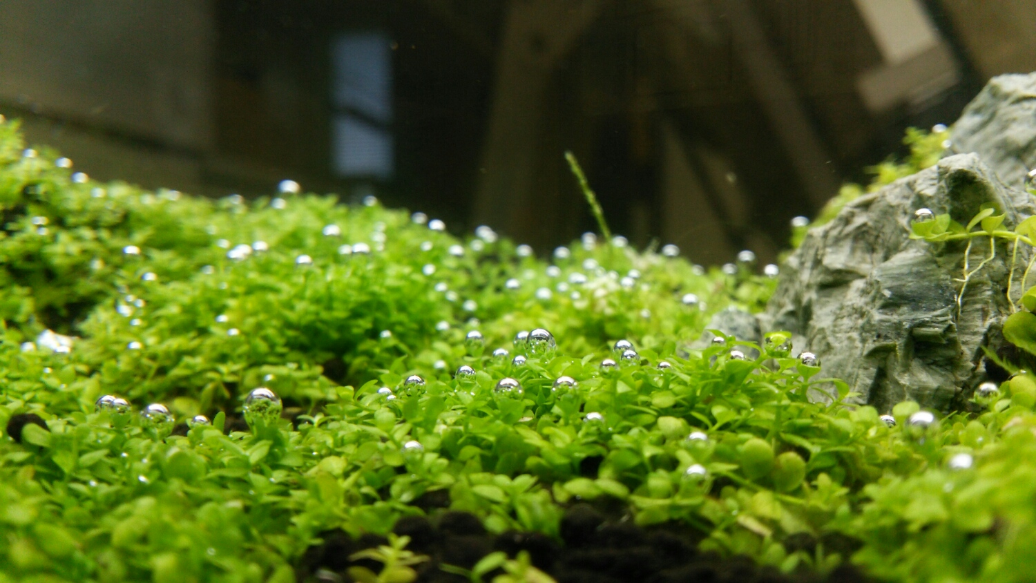 でも、これって水槽に初めて水を入れた時に起こる現象だと思うので、光合成うんぬんではないと思うんですよねぇ。。。